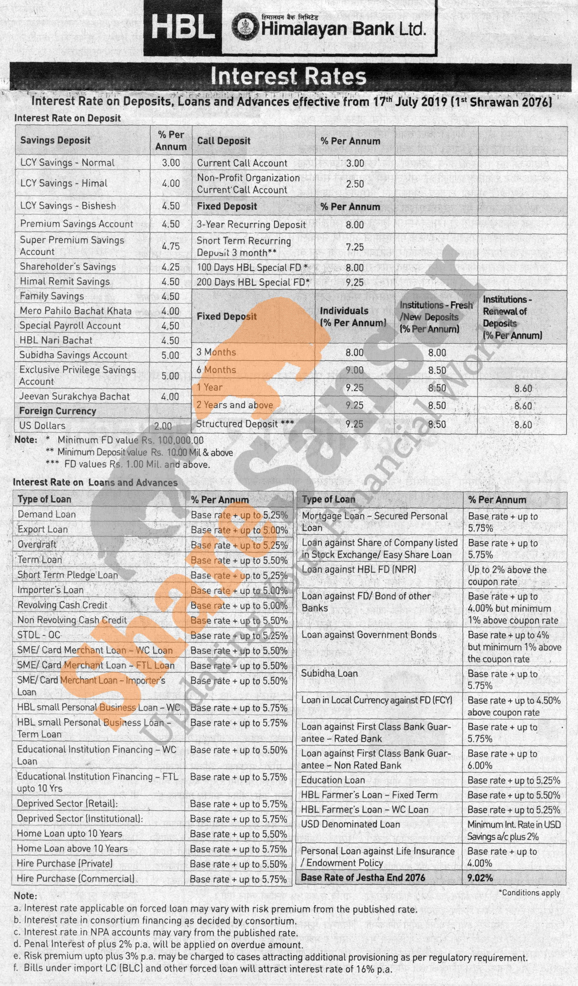 Himalayan Bank Limited has published a notice regarding new interest rate and its effective from 1st Shrawan, 2076.