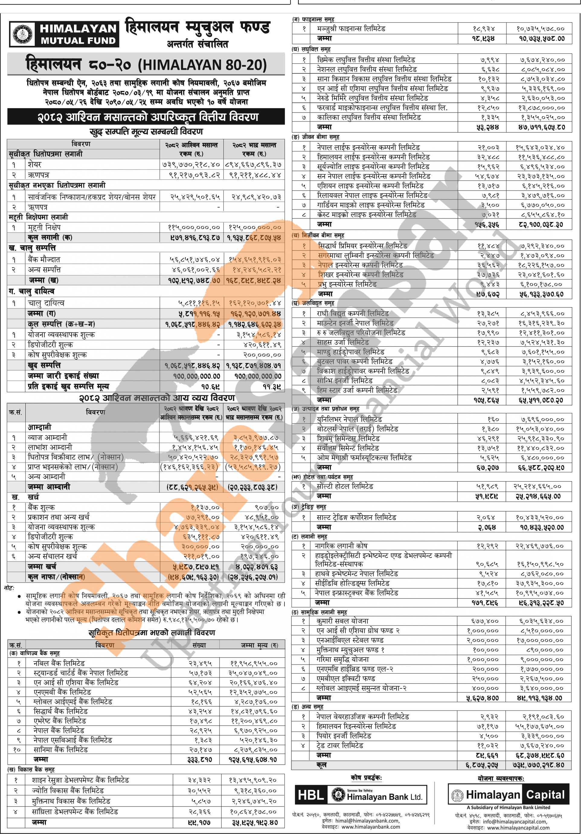 Himalayan Capital Limited has published "Himalayan 80-20" Net Assets Value (NAV) till Ashwin, 2082.