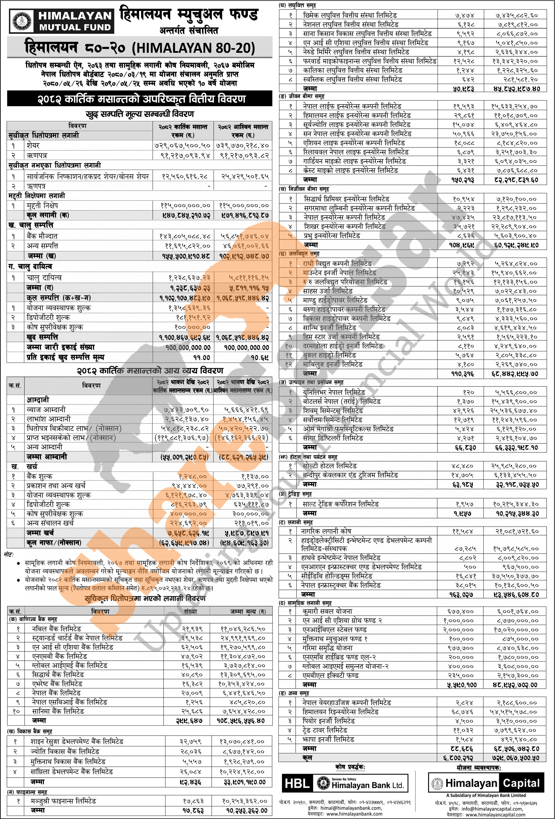 Himalayan Capital Limited has published "Himalayan 80-20" Net Assets Value (NAV) till Kartik, 2082.