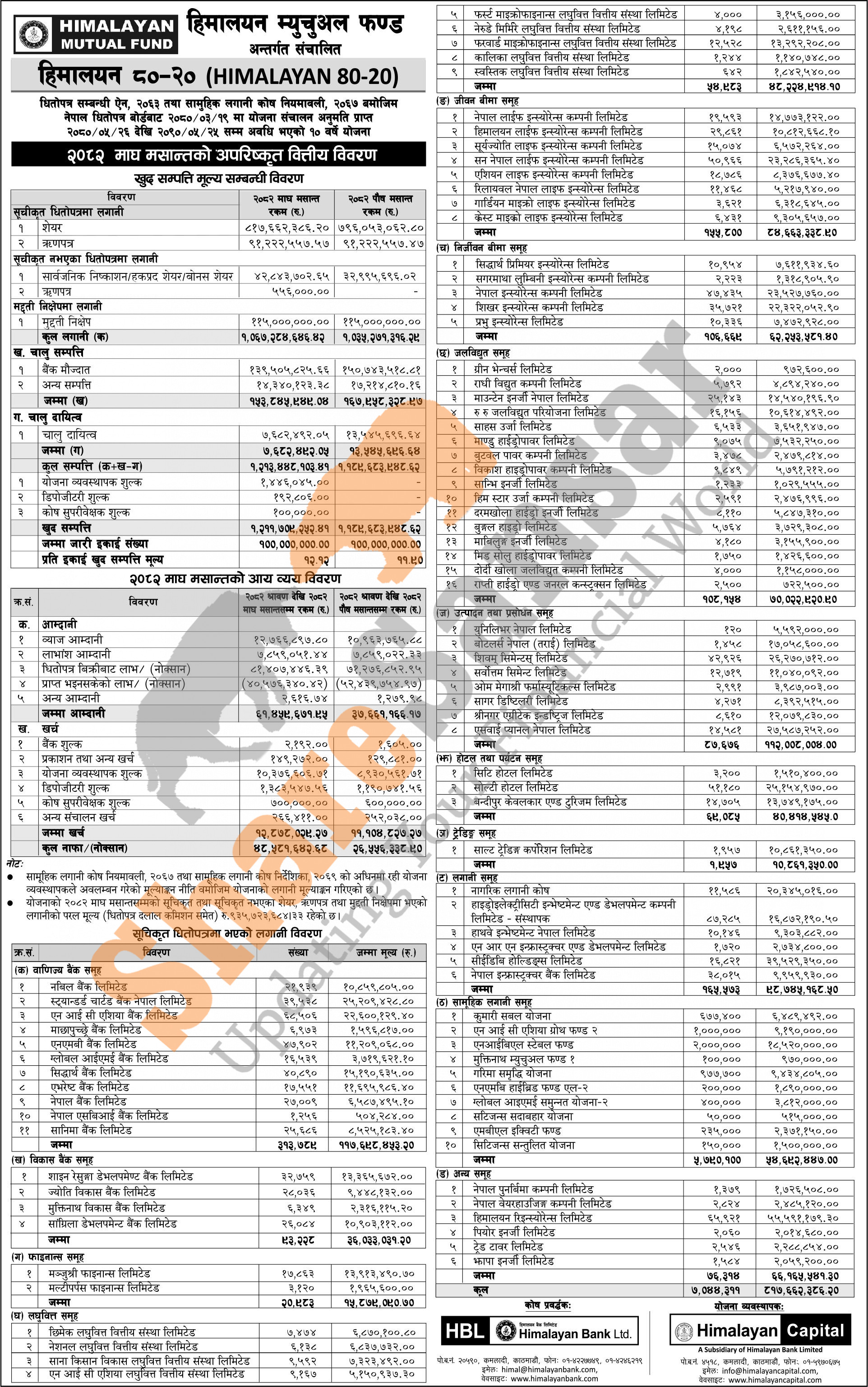 Himalayan Capital Limited has published "Himalayan 80-20" Net Assets Value (NAV) till Magh, 2082.