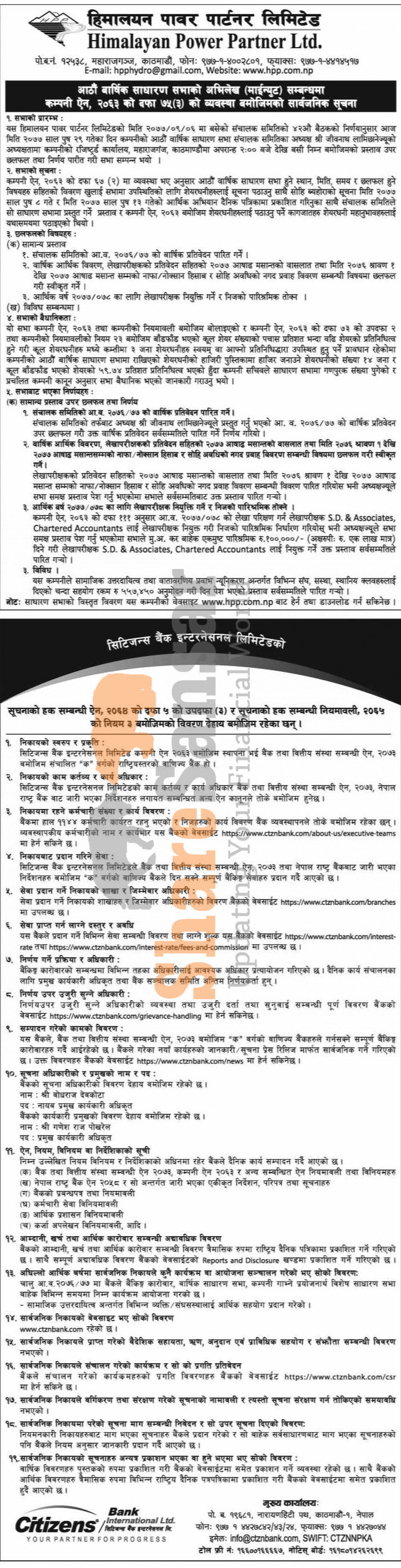 Himalayan Hydropower Partner Limited has published the minutes of its 8th AGM.