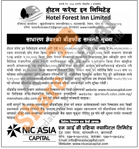 Hotel Forest Inn Limited has allotted its 33,20,000 units IPO shares to the general public on 4th Falgun, 2082.