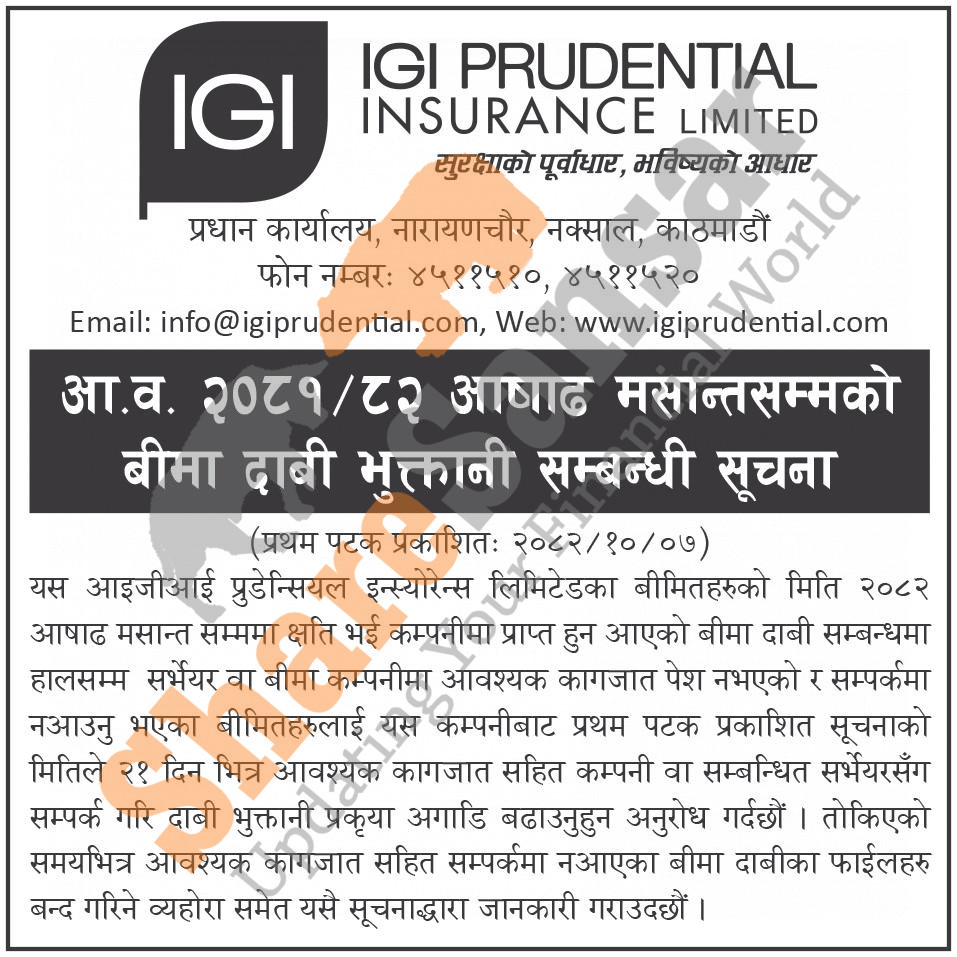 IGI Prudential Insurance Limited has published a notice to the insured to submit the required documents to claim-over on their insurance policies within the given period of time.