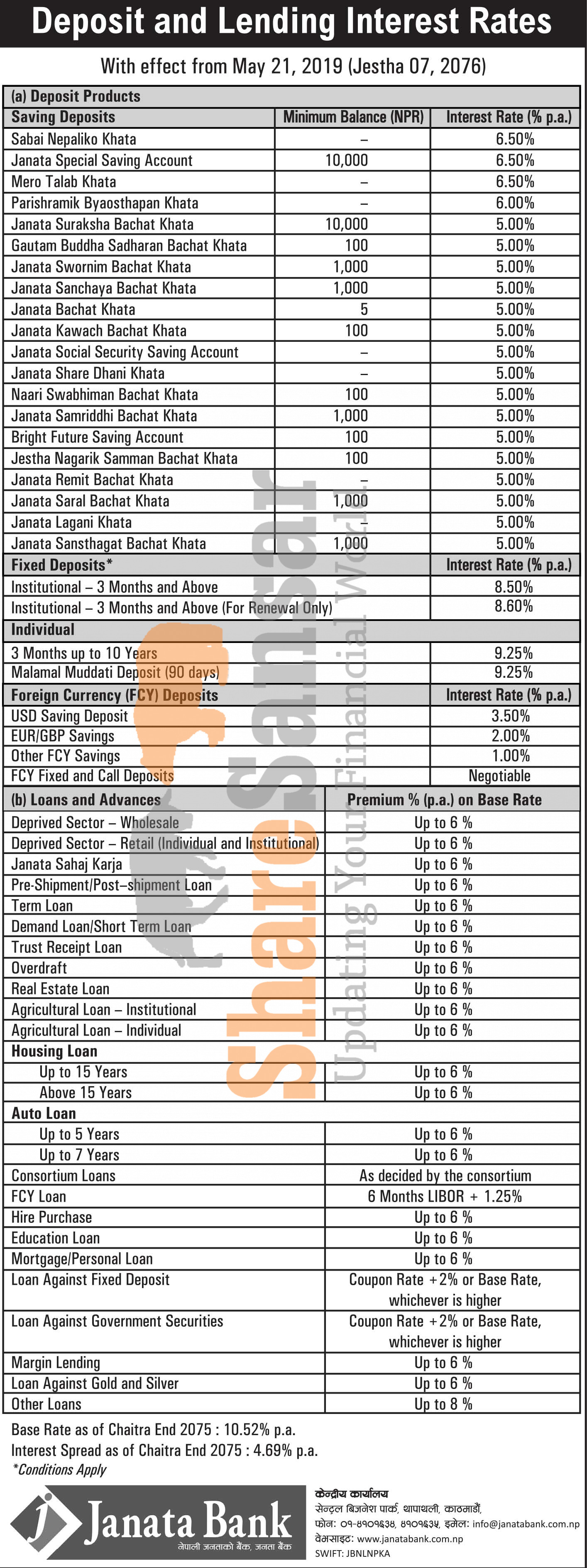 Janata Bank Nepal Limited has published a notice regarding new interest rate and its effective from 7th Jestha, 2076.