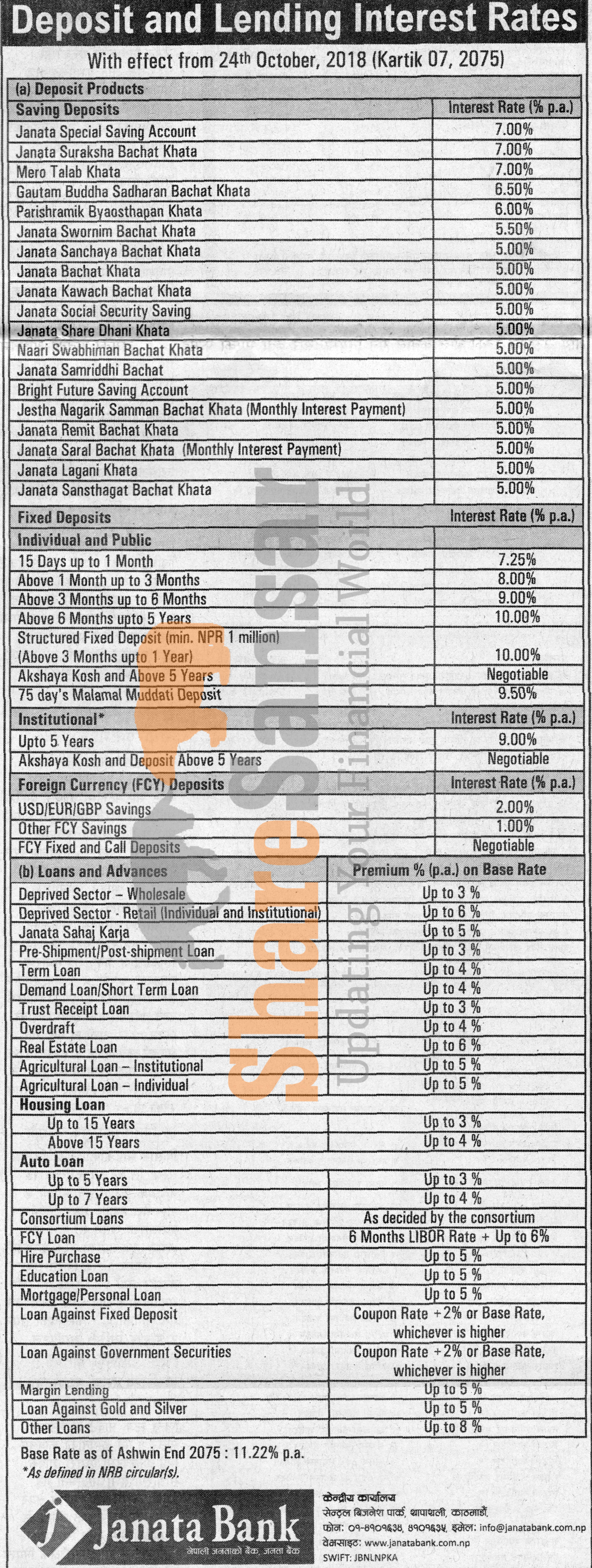 Janata Bank Nepal Limited has published a notice regarding new interest rate and its effective from 7th Kartik, 2075.
