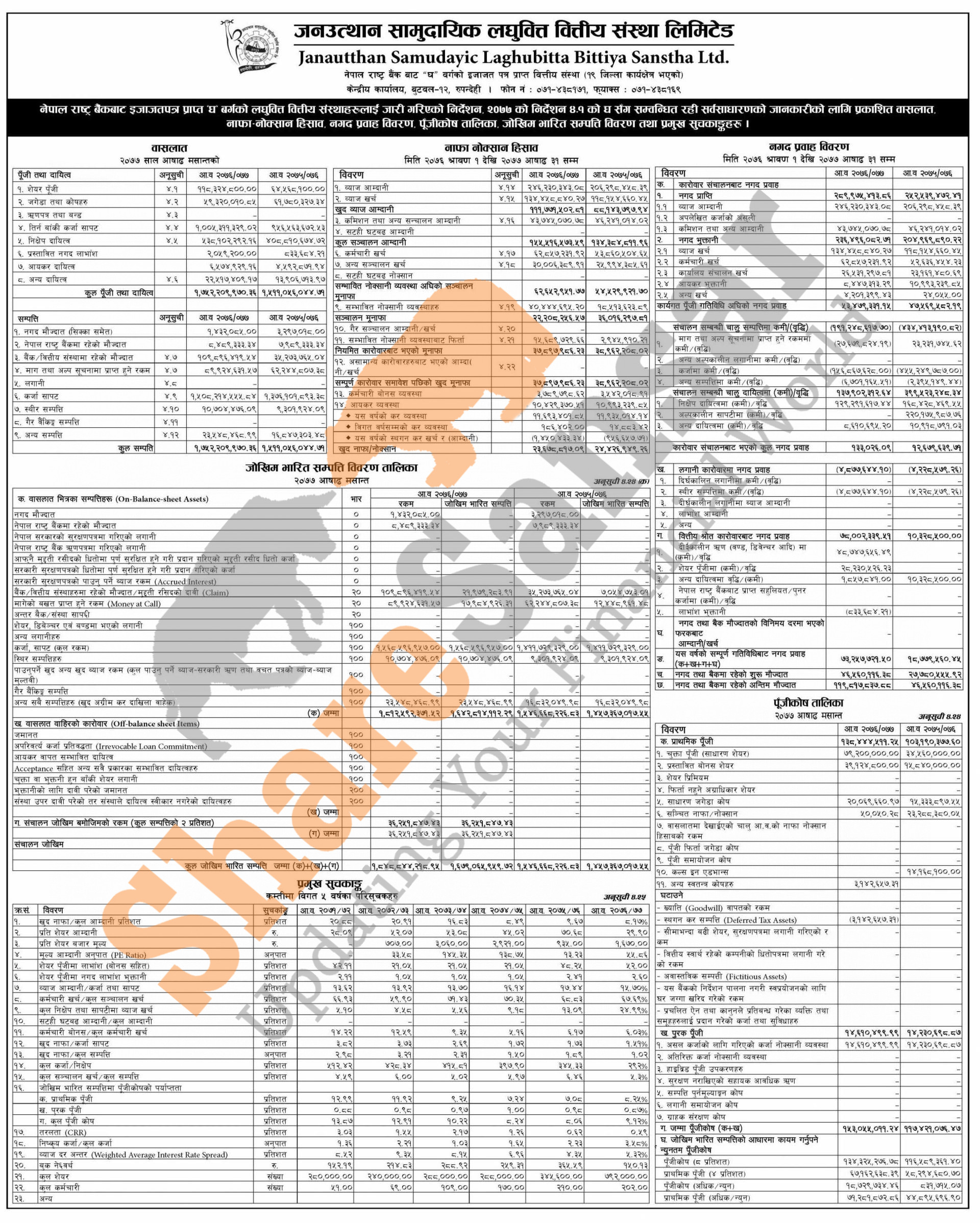 Janautthan Samudayic Laghubitta Bittiya Sanstha Limited has published its annual financial highlights of the fiscal year 2076/77.