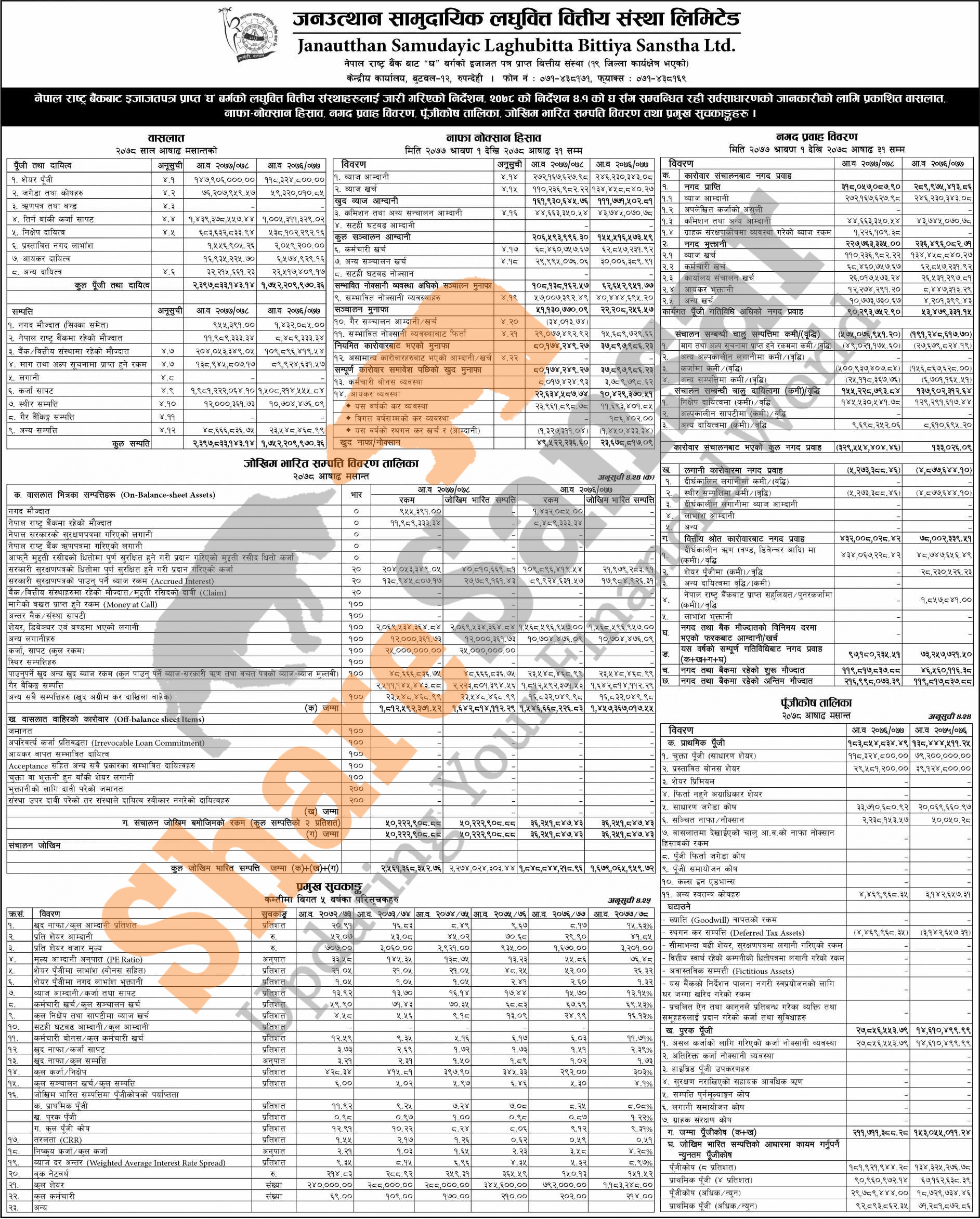 Janautthan Samudayik Laghubitta Bittiya Sanstha Limited has published its annual financial highlights of the fiscal year 2077/78.