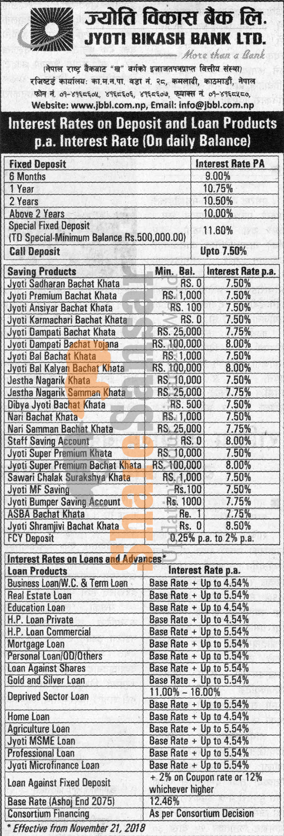Jyoti Bikas Bank Limited has published a notice regarding new interest rate and its effective from 5th Mangsir, 2075.