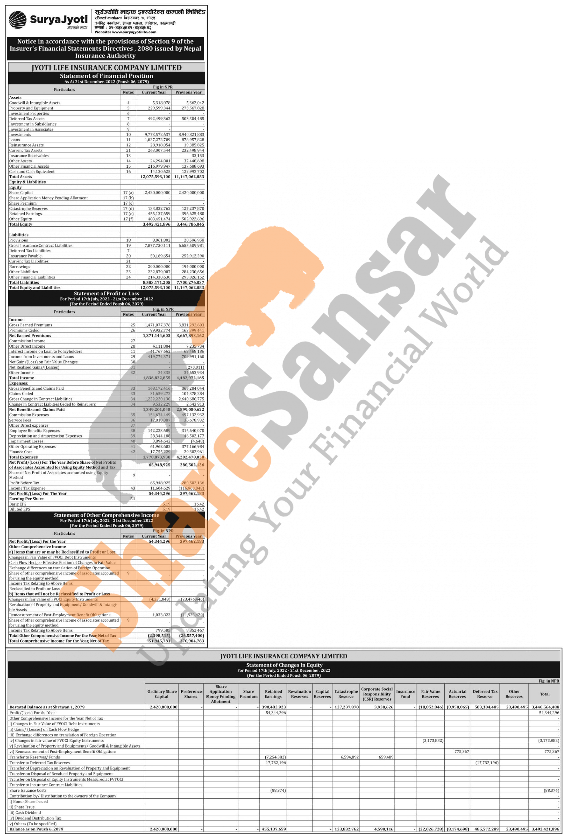 Jyoti Life Insurance Company Limited has published its annual financial statement of the fiscal year 2078/79.