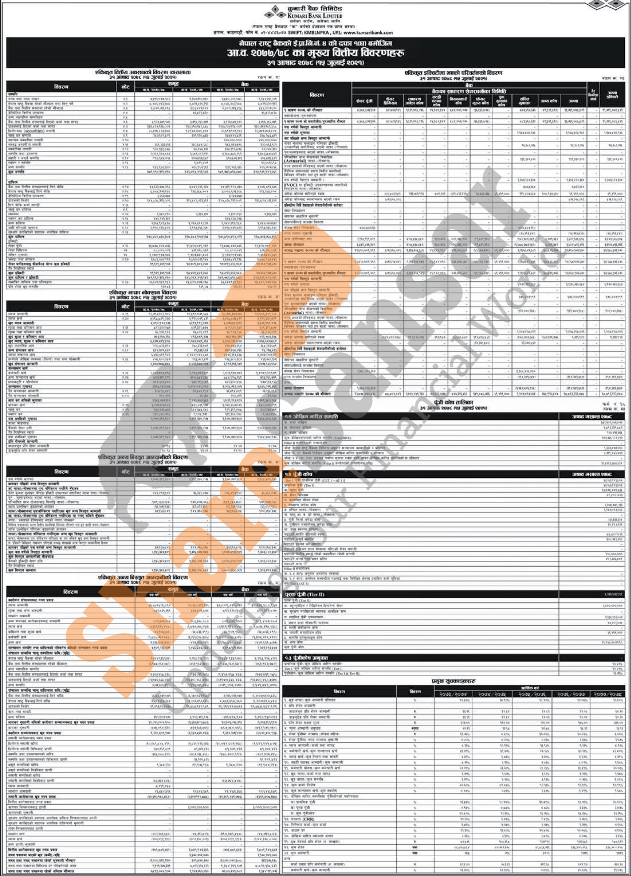 Kumari Bank Limited has published its annual financial highlights of the fiscal year 2077/78.