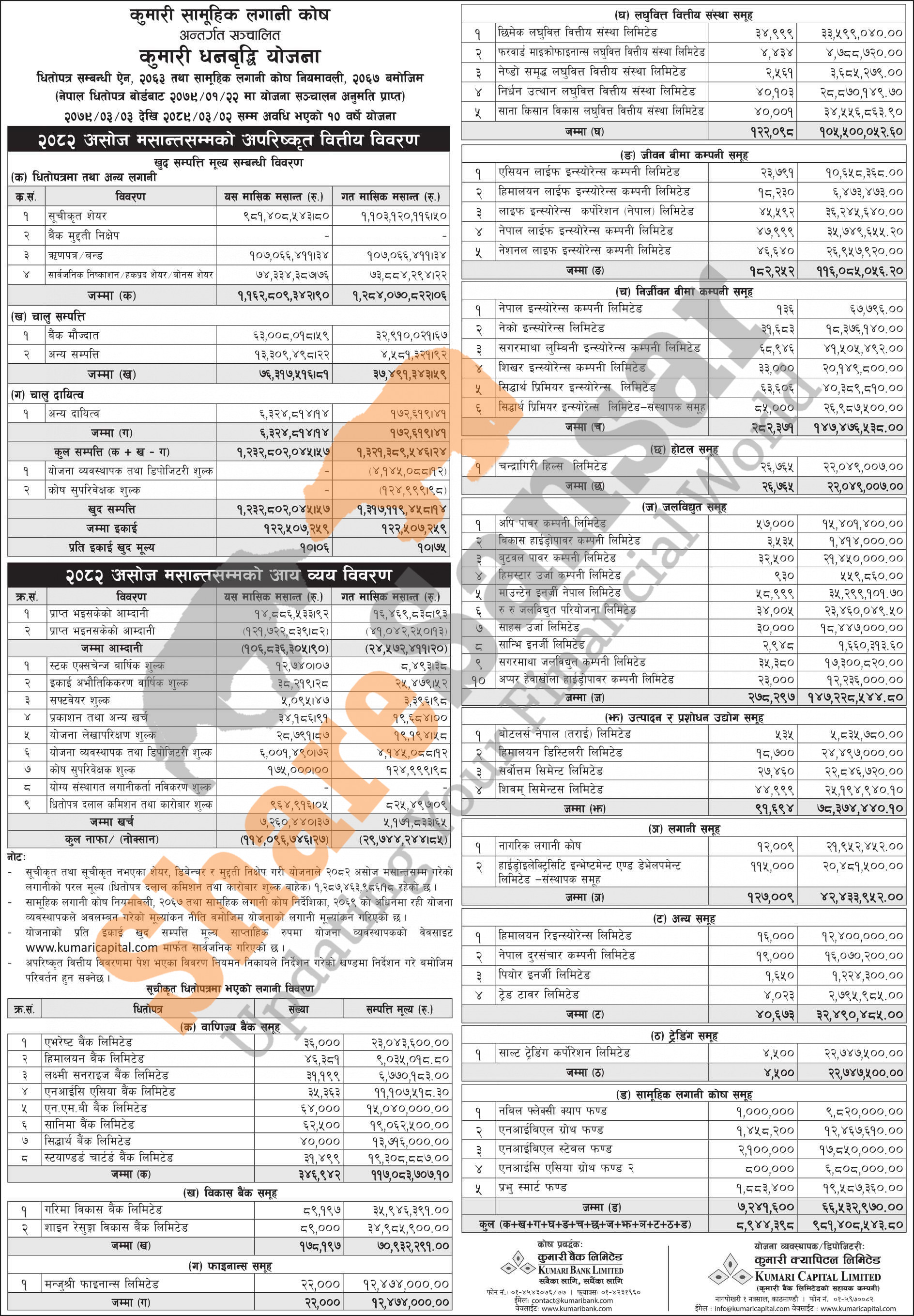 Kumari Capital Limited has published “Kumari Dhanabriddhi Yojana” Net Asset Value (NAV) till Ashwin, 2082.