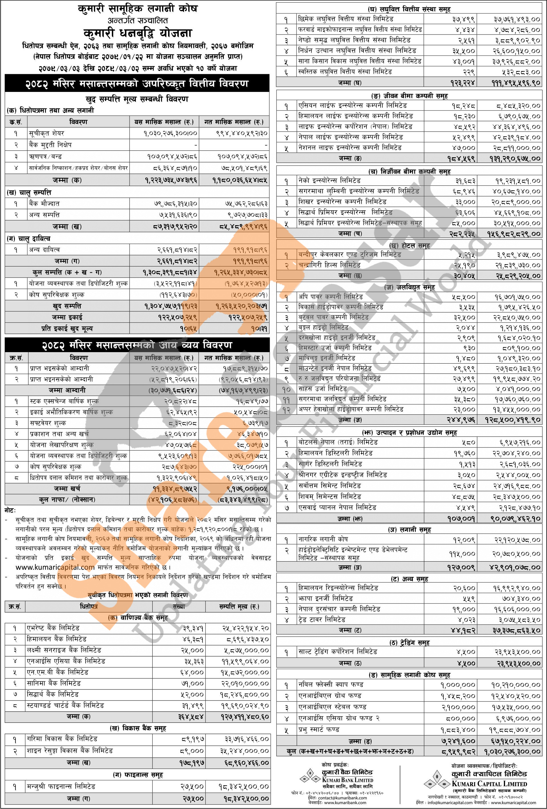 Kumari Capital Limited has published “Kumari Dhanabriddhi Yojana” Net Asset Value (NAV) till Mangsir, 2082.
