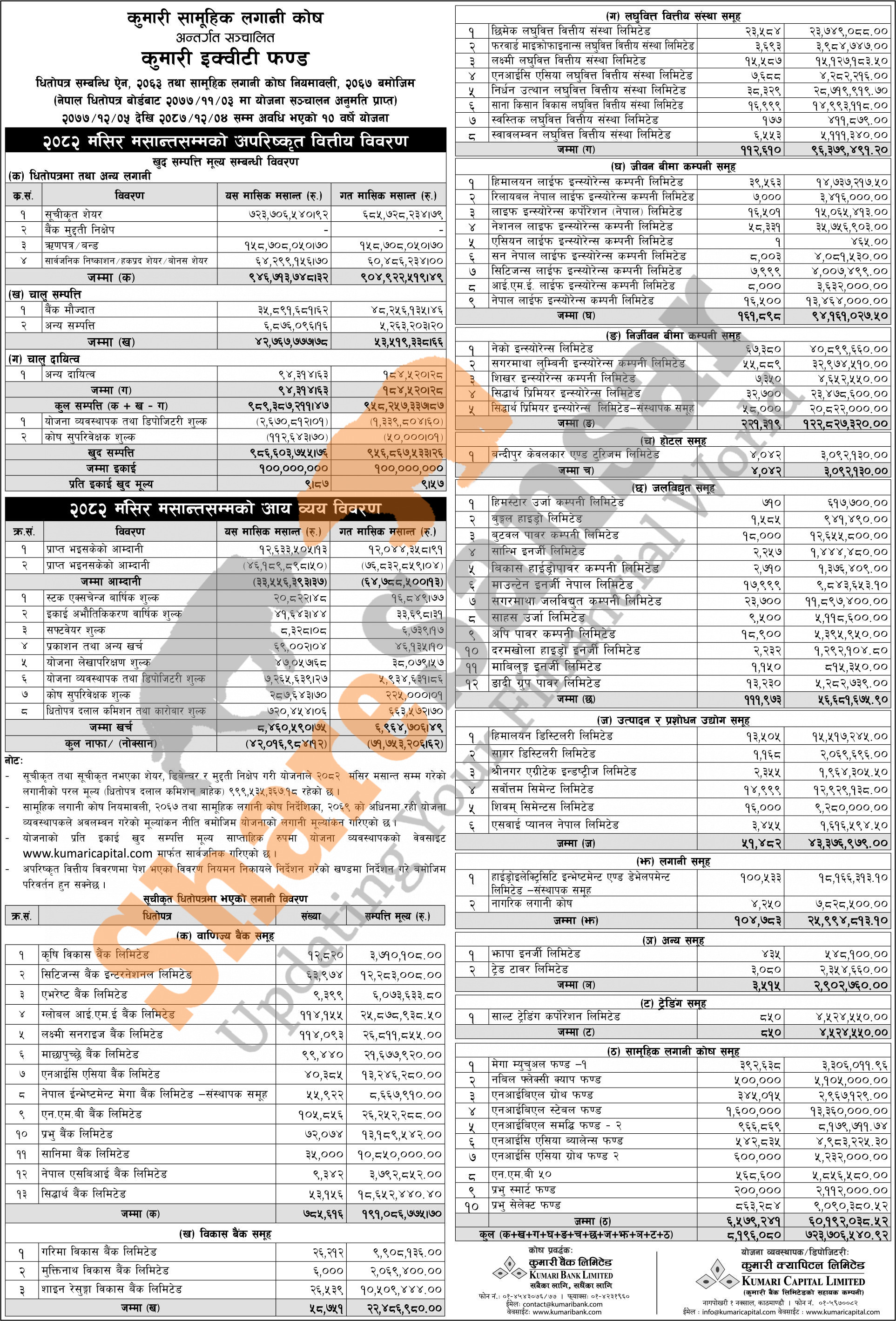 Kumari Capital Limited has published “Kumari Equity Fund” Net Asset Value (NAV) till Mangsir, 2082.