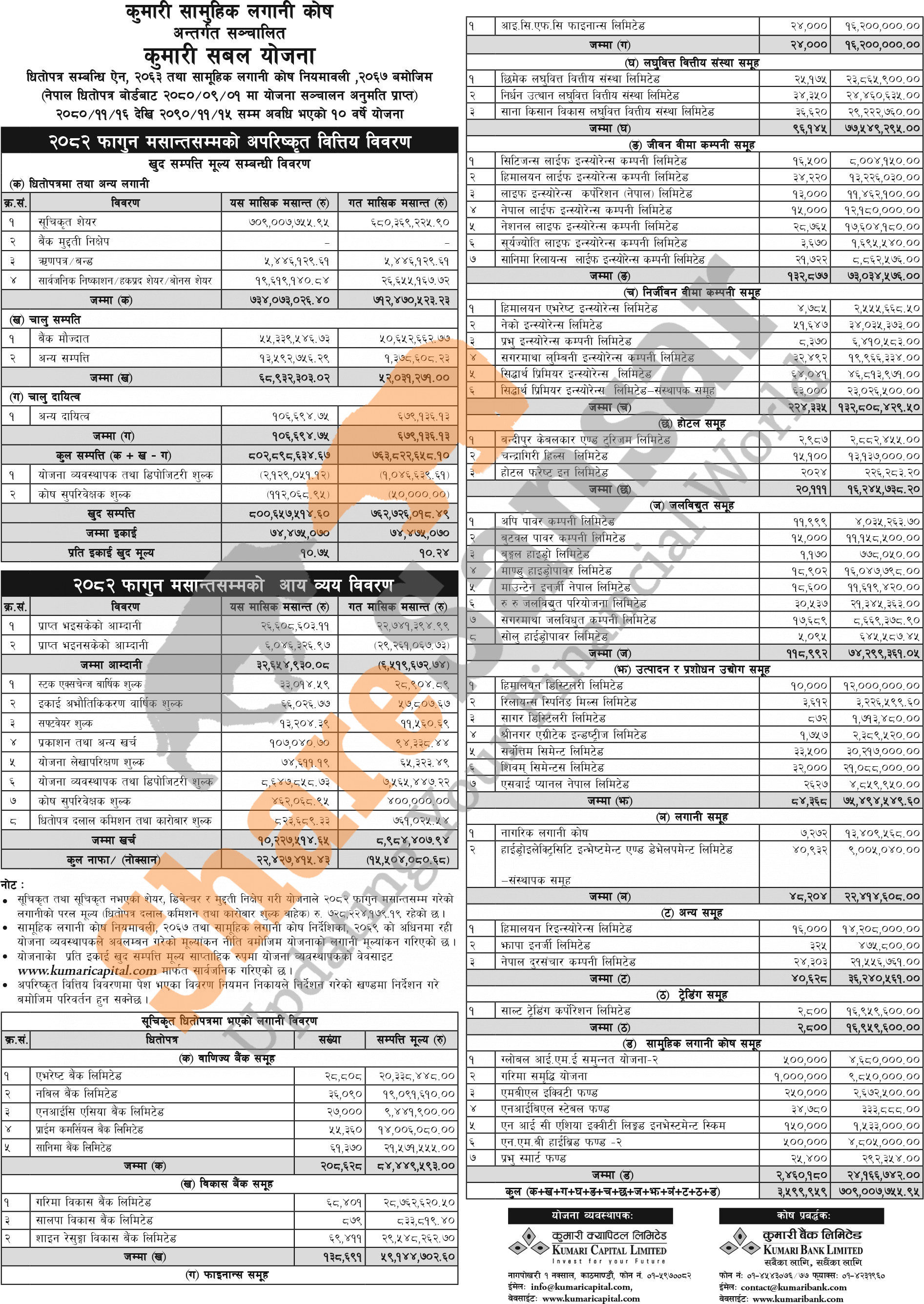 Kumari Capital Limited has published “Kumari Sunaulo Lagani Yojana” Net Asset Value (NAV) till Falgun, 2082.