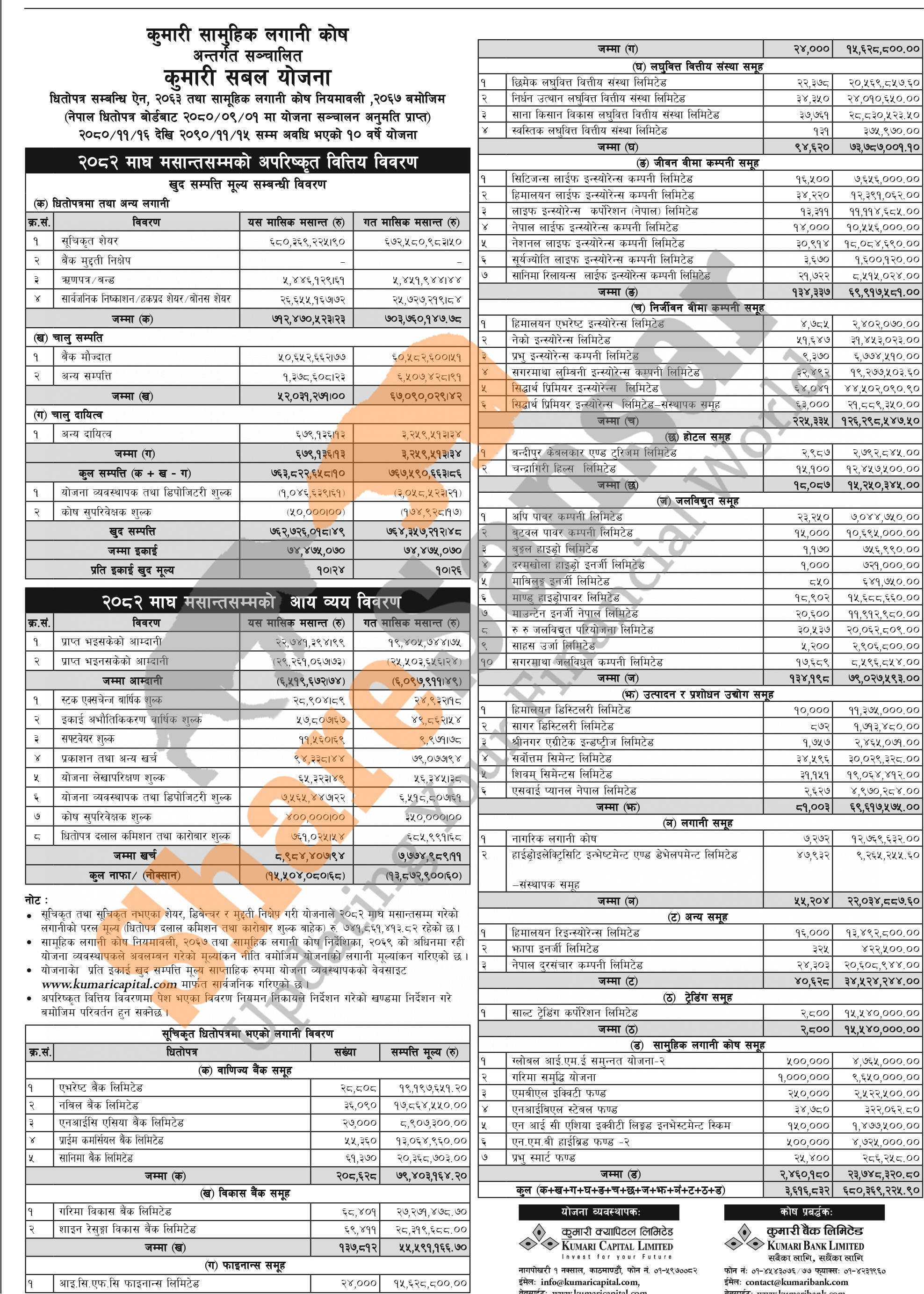 Kumari Capital Limited has published “Kumari Sabal Yojana” Net Asset Value (NAV) till Magh, 2082.