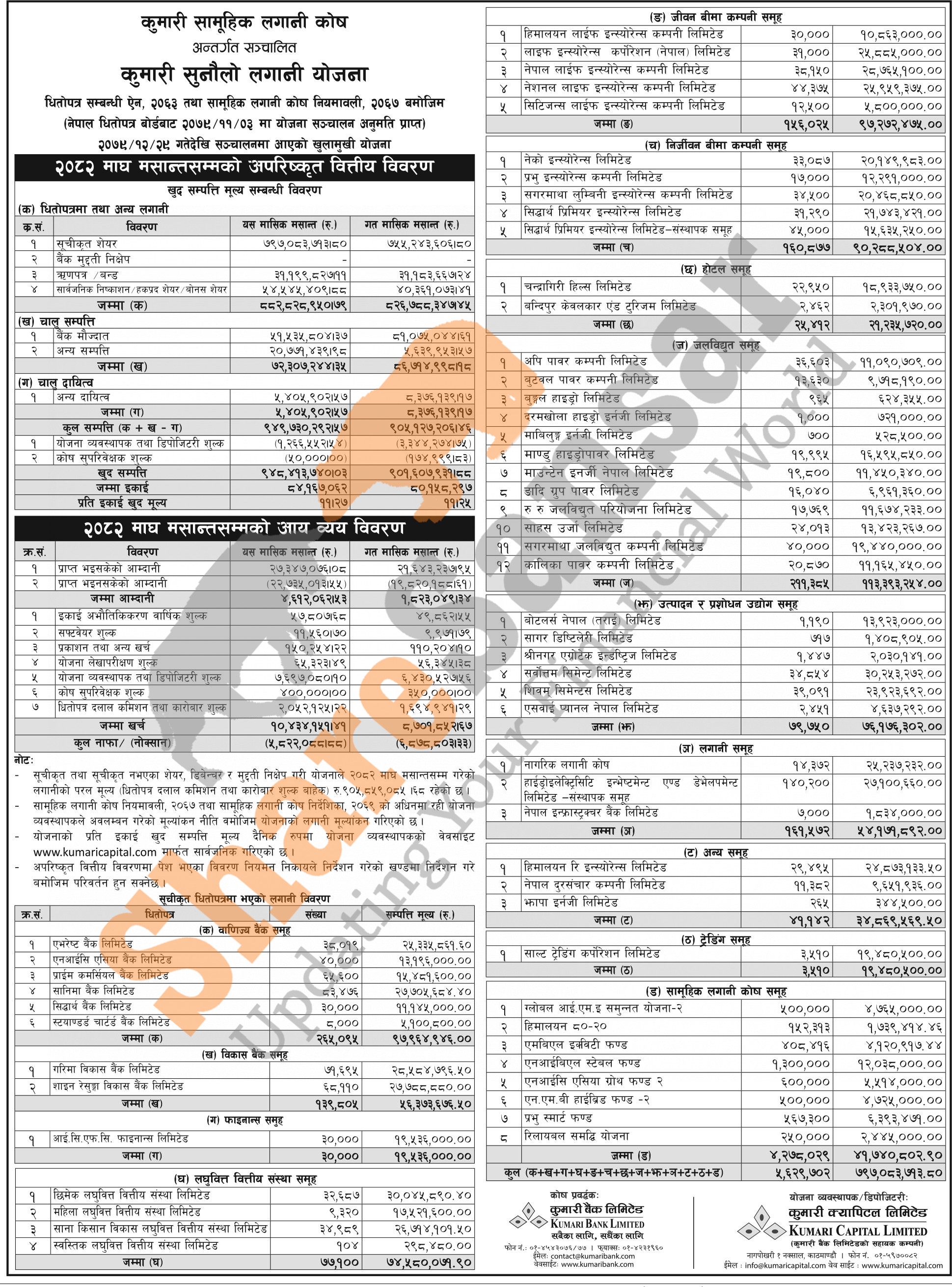 Kumari Capital Limited has published “Kumari Sunaulo Lagani Yojana” Net Asset Value (NAV) till Magh, 2082.