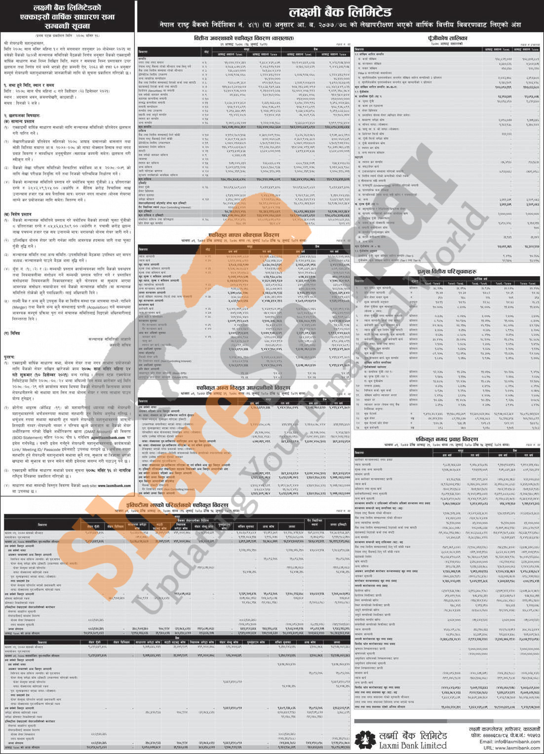 Laxmi Bank Limited has announced its 21st AGM going to be held on 8th Poush, 2078 and published its annual financial statement of the fiscal year 2077/78.