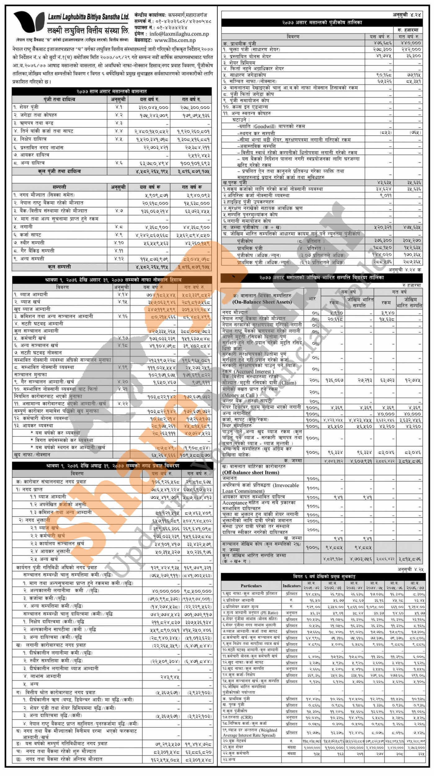 Laxmi Laghubitta Bittiya Sanstha Limited has published its annual financial highlights of the fiscal year 2076/77.