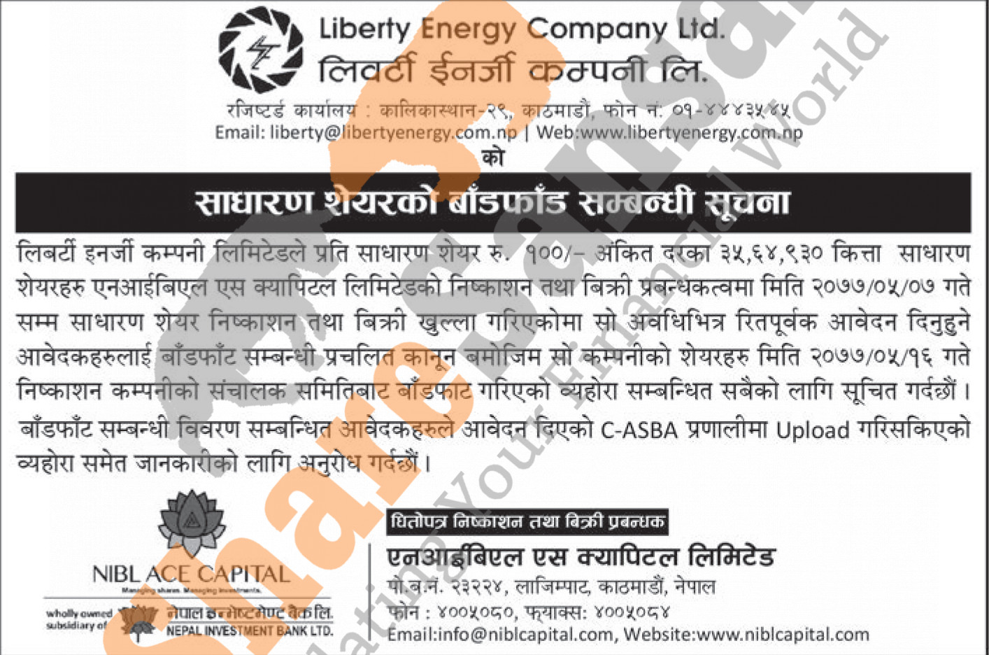 Liberty Energy Company Limited has allotted its 35,64,930 units IPO shares to the general public, employees, and mutual fund on 16th Bhadra, 2077.