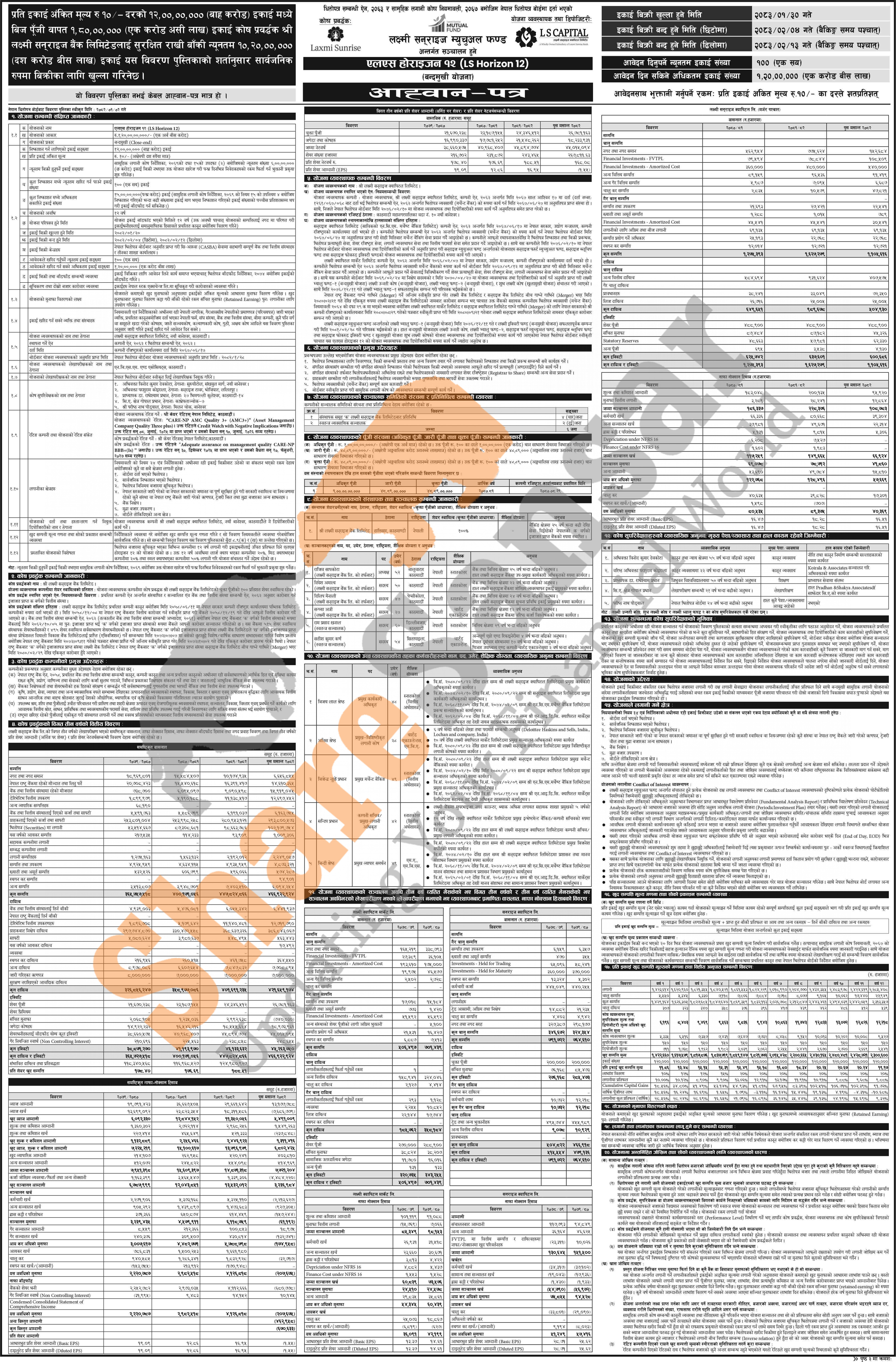 LS Capital Limited has published an offer letter to issue 120 million units of Rs 10 face value each "LS Horizon 12" to the general public from 30th Baisakh to 4th Jestha, 2083.
