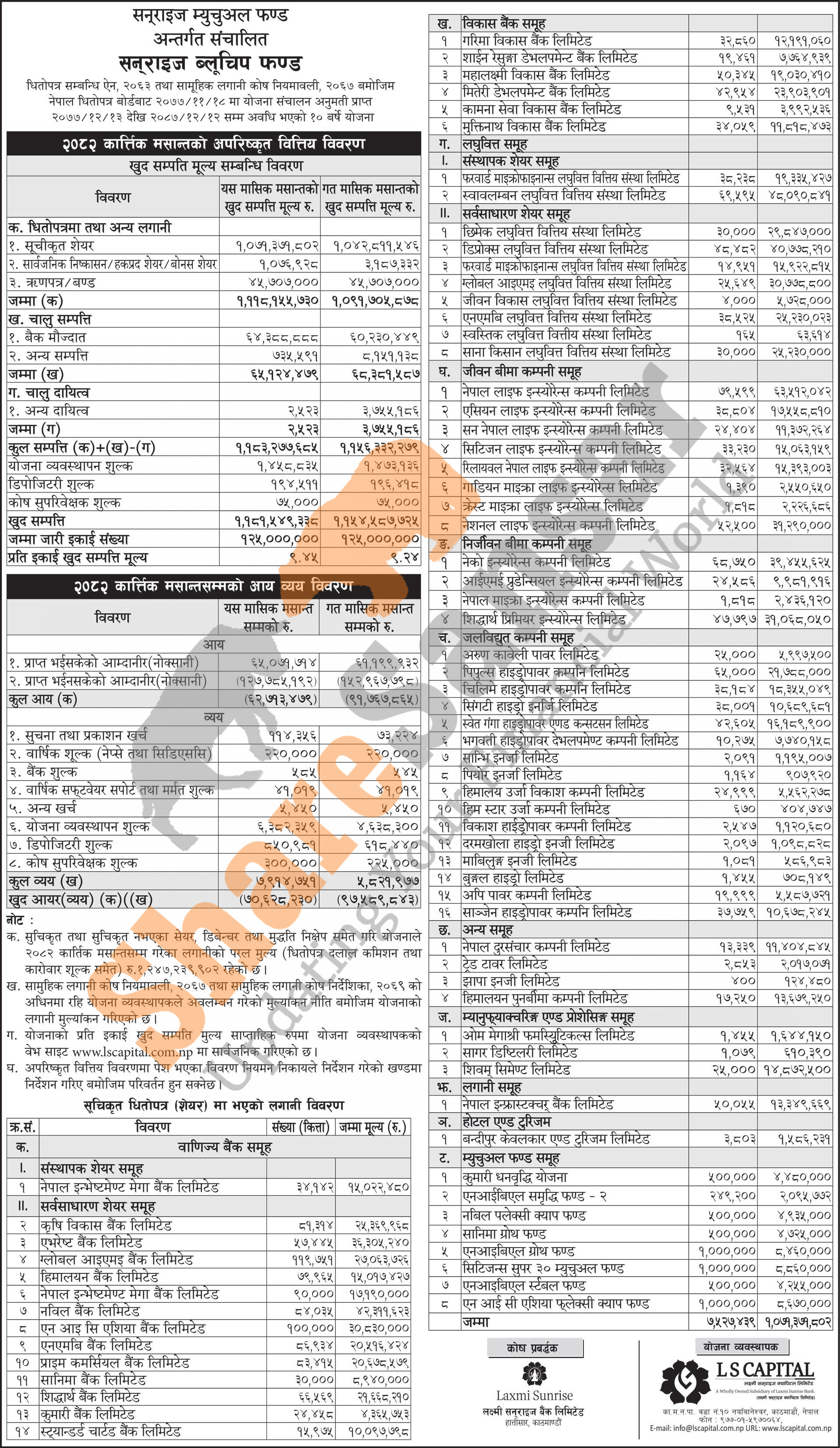 LS Capital Limited has published "Sunrise Bluechip Fund" Net Asset Value (NAV) till Kartik, 2082.