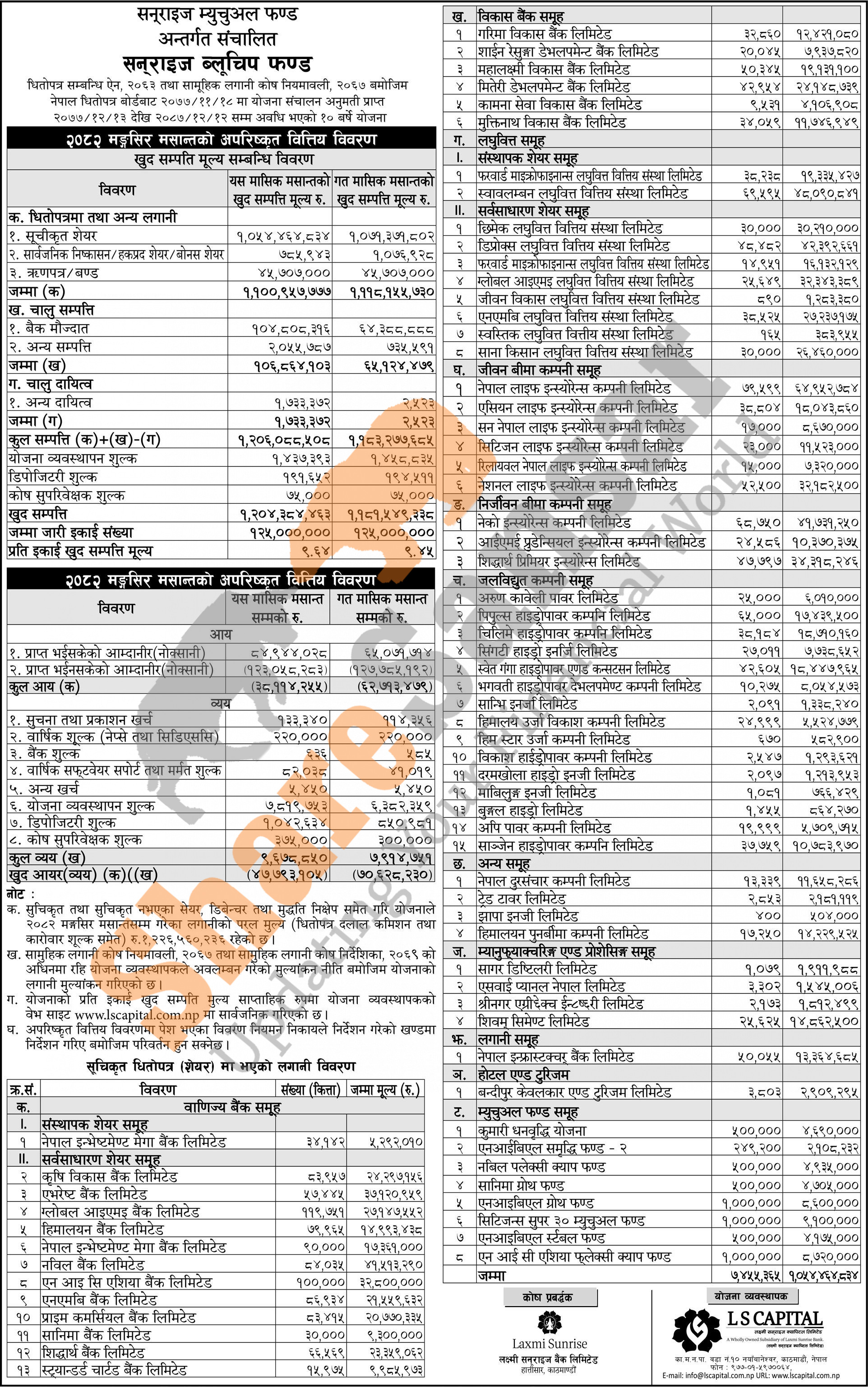 LS Capital Limited has published "Sunrise Bluechip Fund" Net Asset Value (NAV) till Mangsir, 2082.