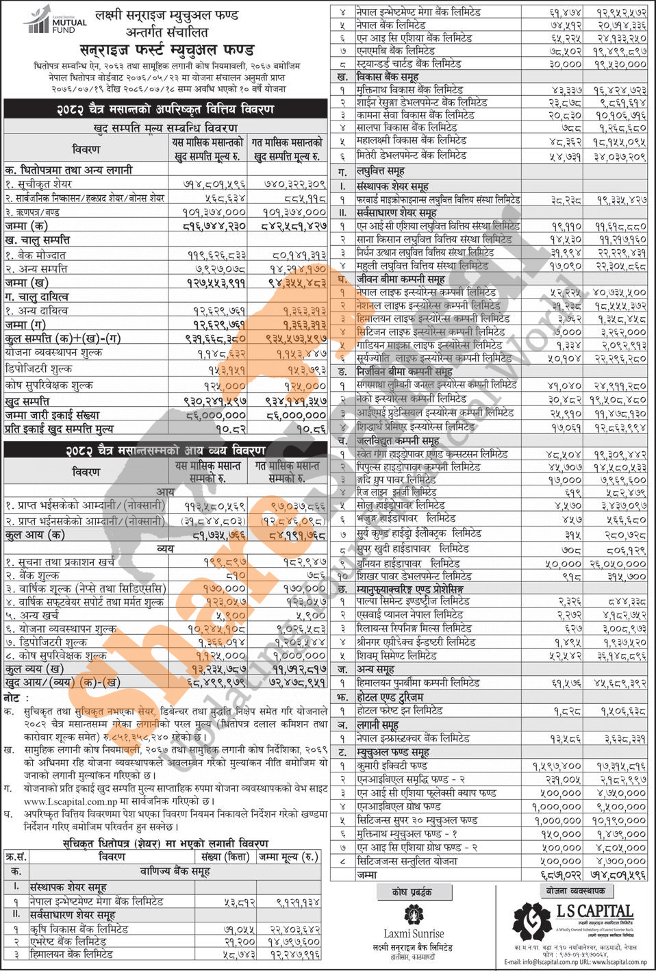 LS Capital Limited has published "Sunrise First Mutual Fund" Net Asset Value (NAV) till Chaitra, 2082.