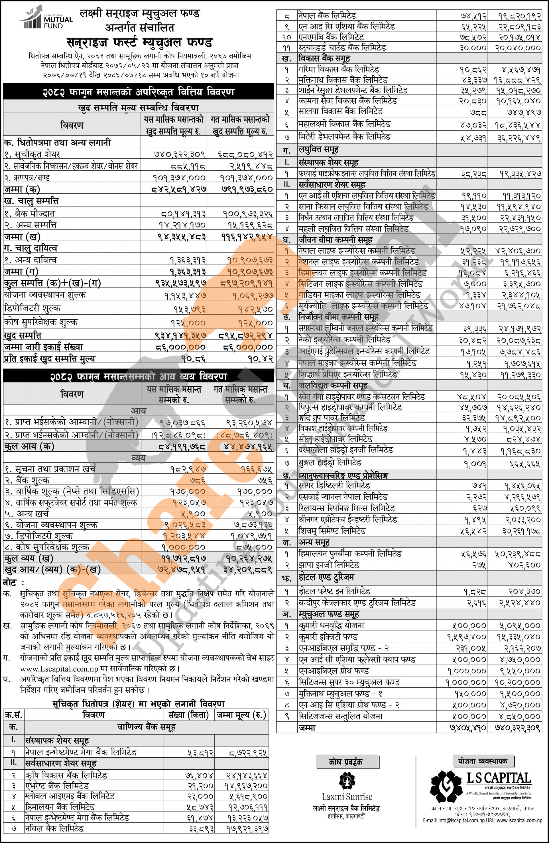 LS Capital Limited has published "Sunrise First Mutual Fund" Net Asset Value (NAV) till Falgun, 2082.