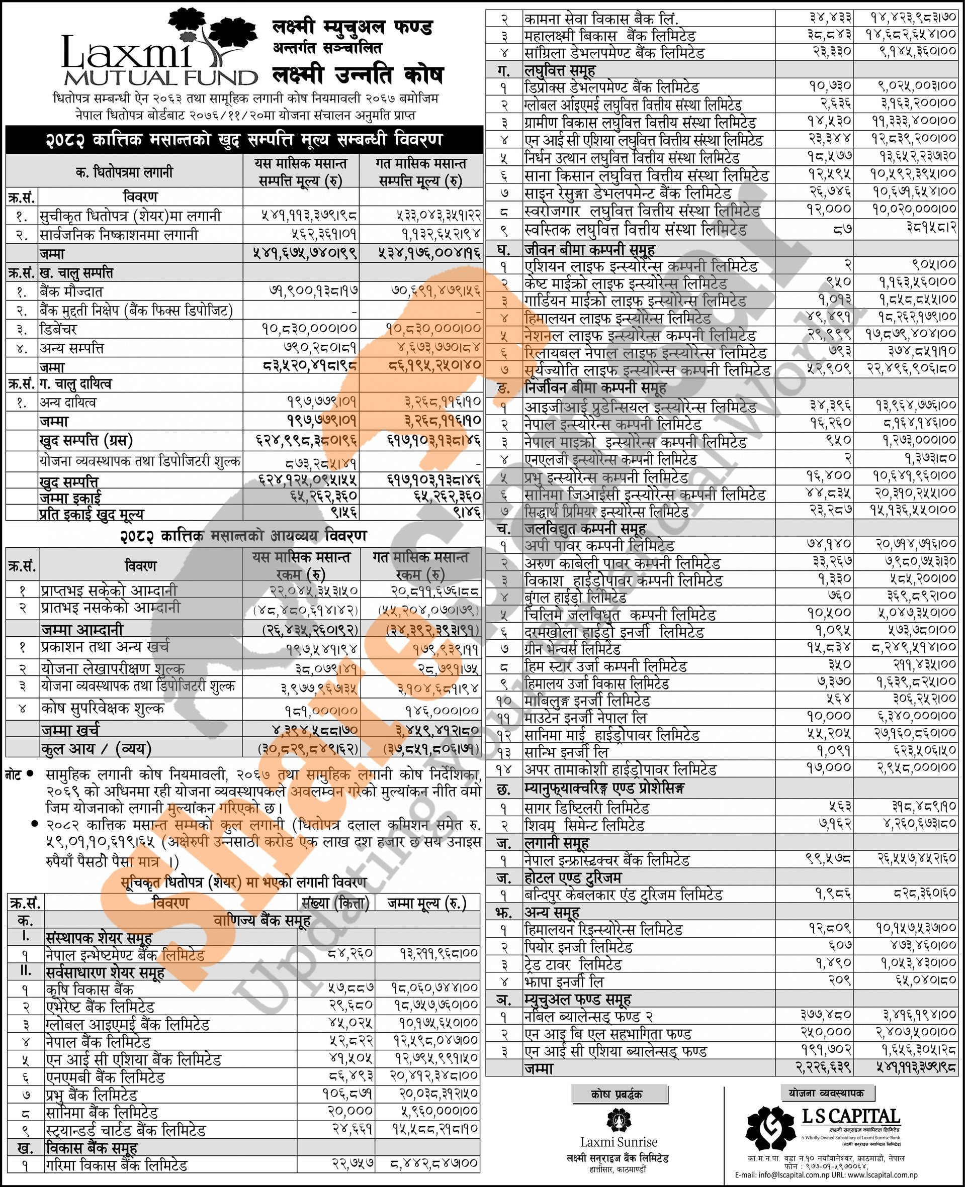 LS Capital Limited has published the “Laxmi Unnati Kosh” Net Asset Value (NAV) till Kartik, 2082.