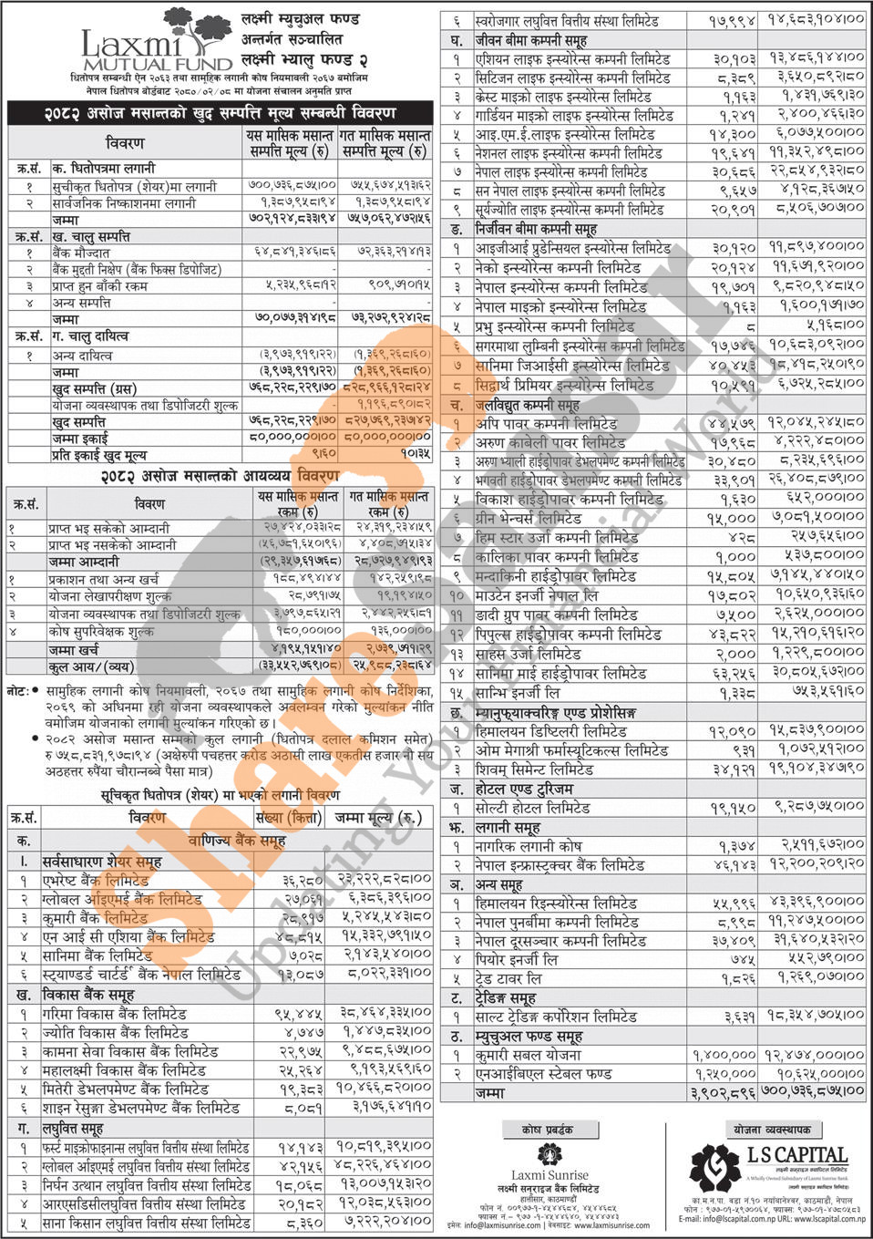 LS Capital Limited has published the “Laxmi Value Fund-II” Net Asset Value (NAV) till Ashwin, 2082.