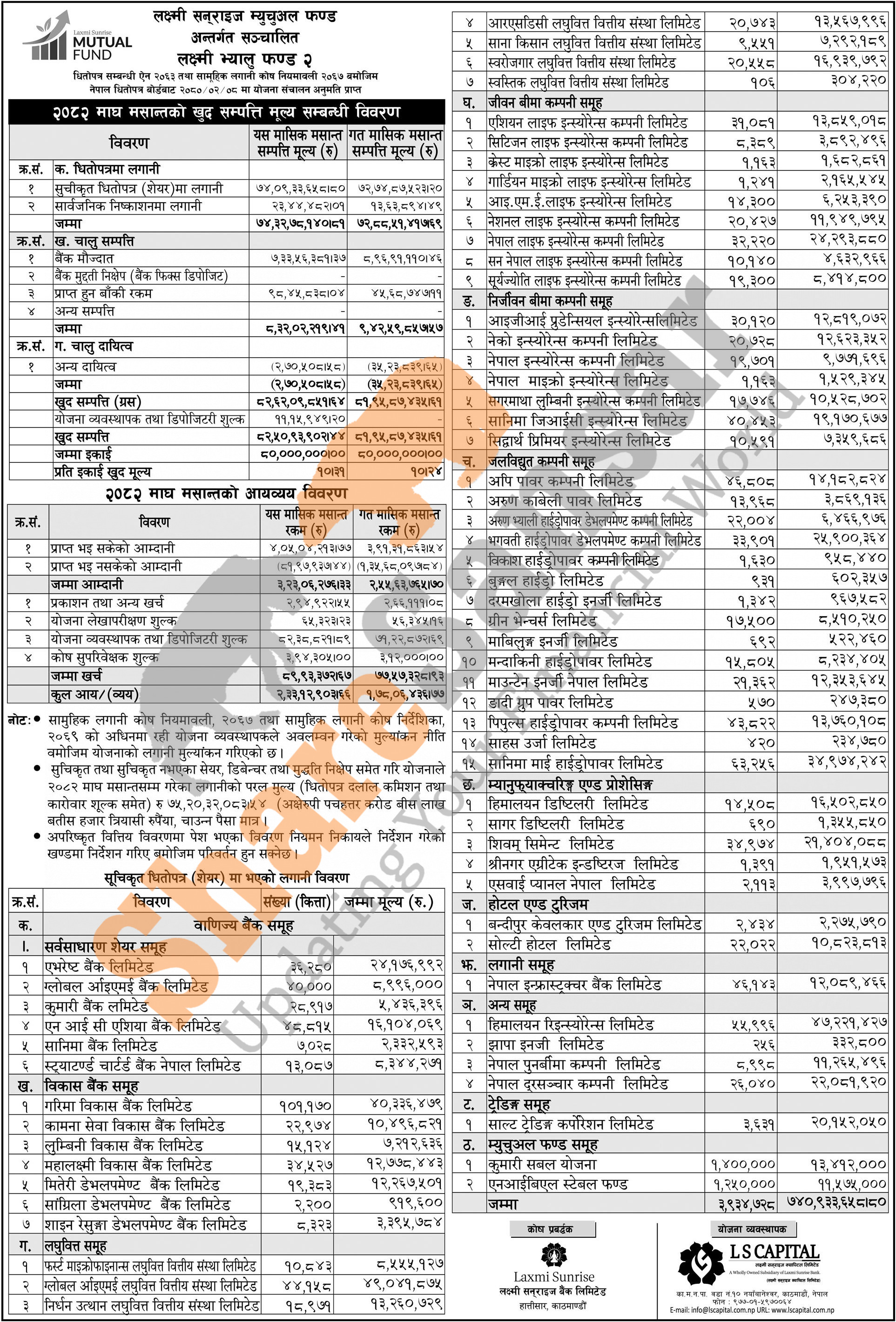 LS Capital Limited has published the “Laxmi Value Fund-II” Net Asset Value (NAV) till Magh, 2082.