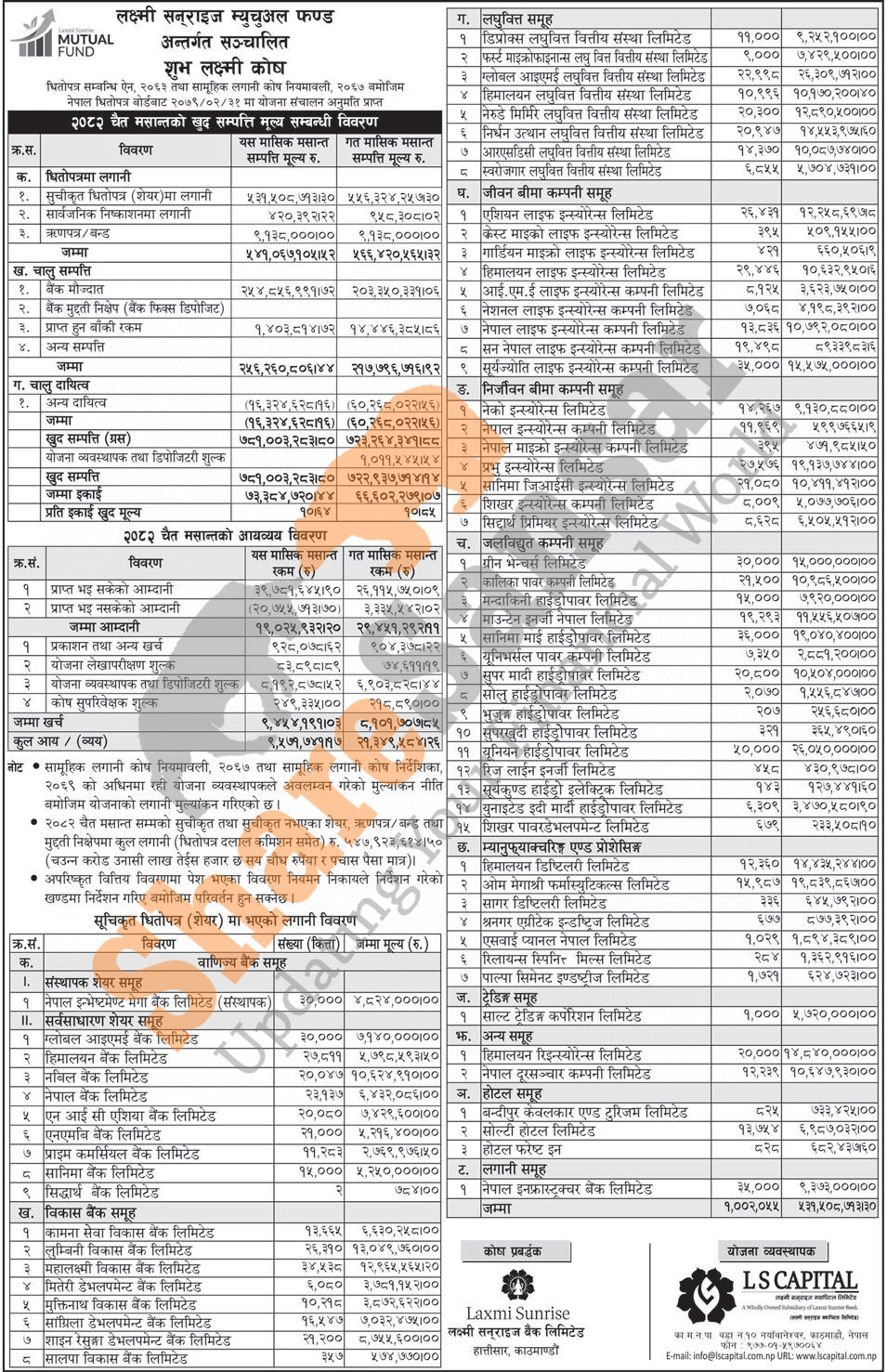LS Capital Limited has published the “Shubha Laxmi Kosh” Net Asset Value (NAV) till Chaitra, 2082.