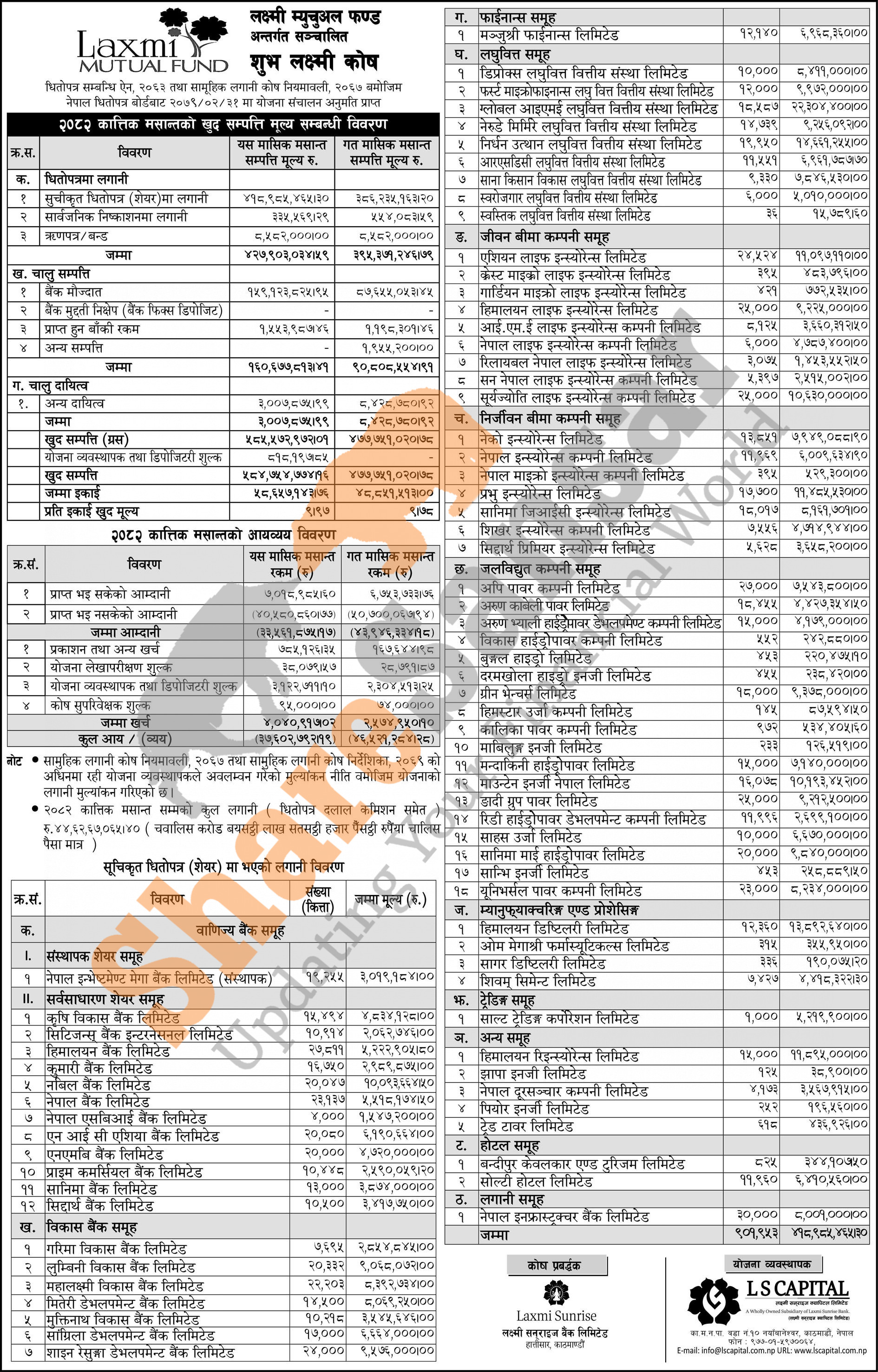 LS Capital Limited has published the “Shubha Laxmi Kosh” Net Asset Value (NAV) till Kartik, 2082.