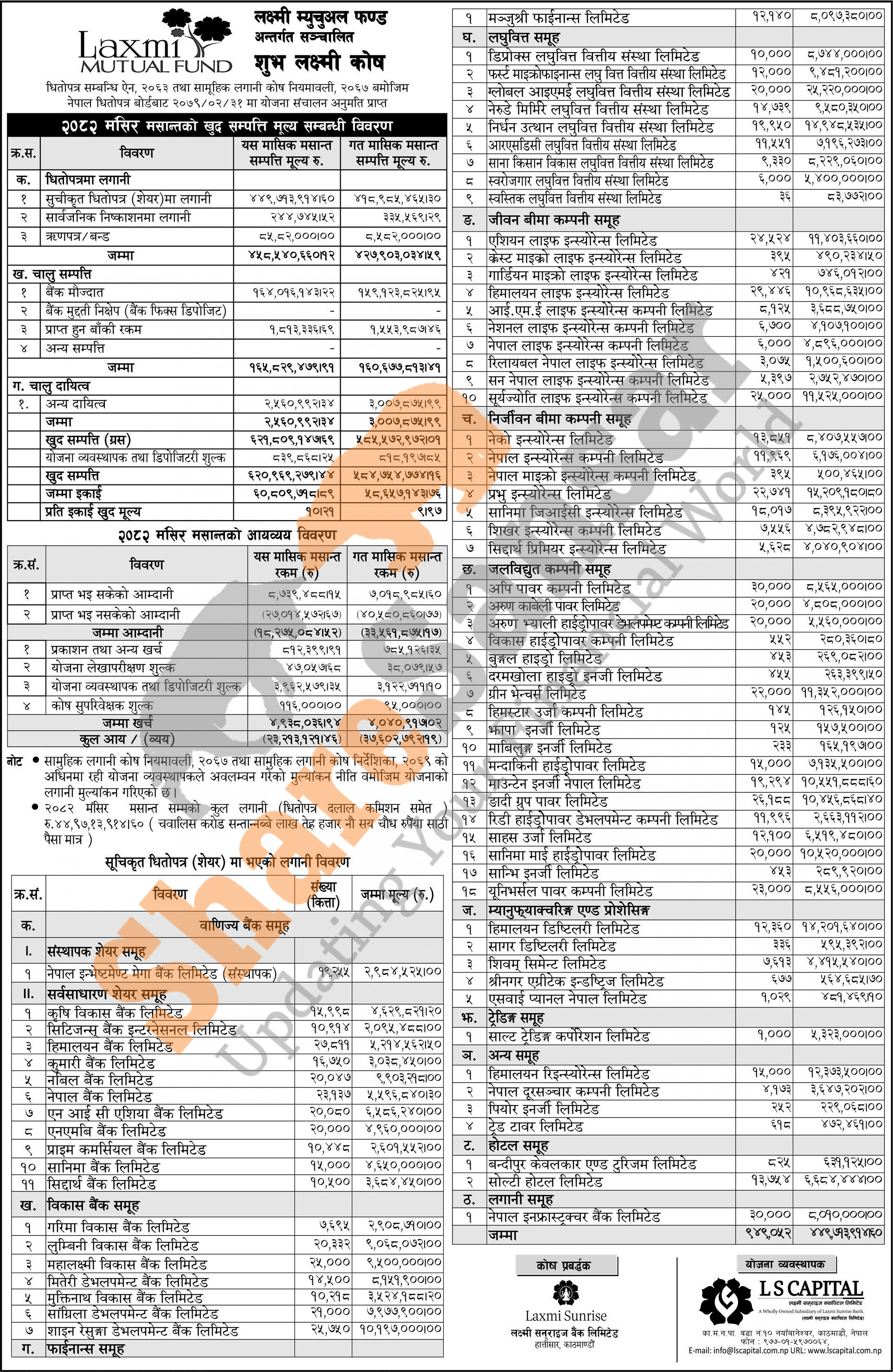LS Capital Limited has published the “Shubha Laxmi Kosh” Net Asset Value (NAV) till Mangsir, 2082.