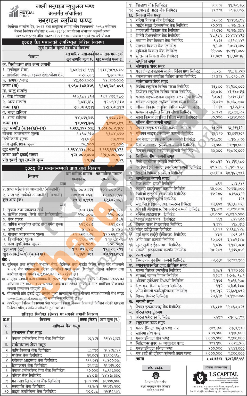 LS Capital Limited has published the “Sunrise Bluechip Fund” Net Asset Value (NAV) till Chaitra, 2082.