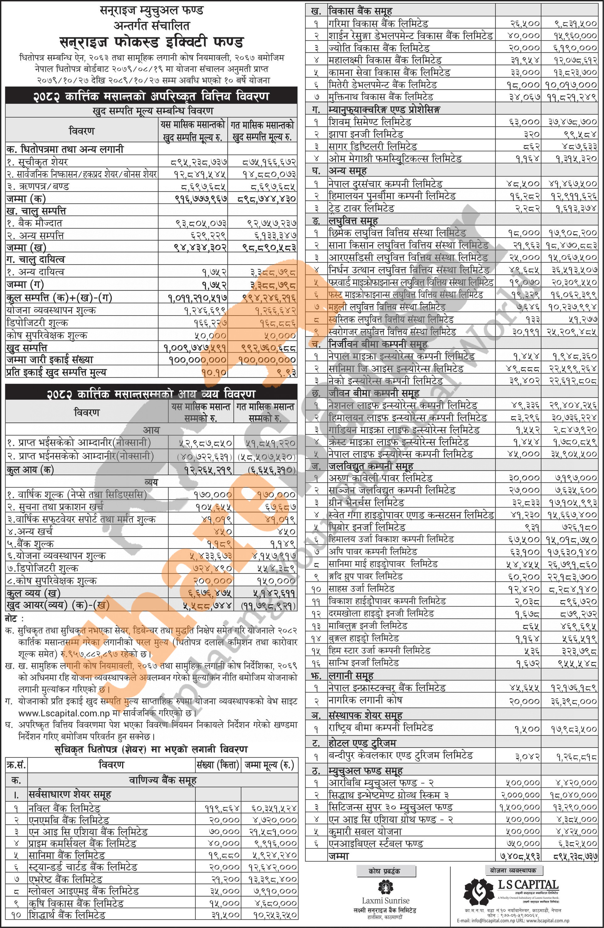 LS Capital Limited has published the “Sunrise Focused Equity Fund” Net Asset Value (NAV) till Kartik, 2082.