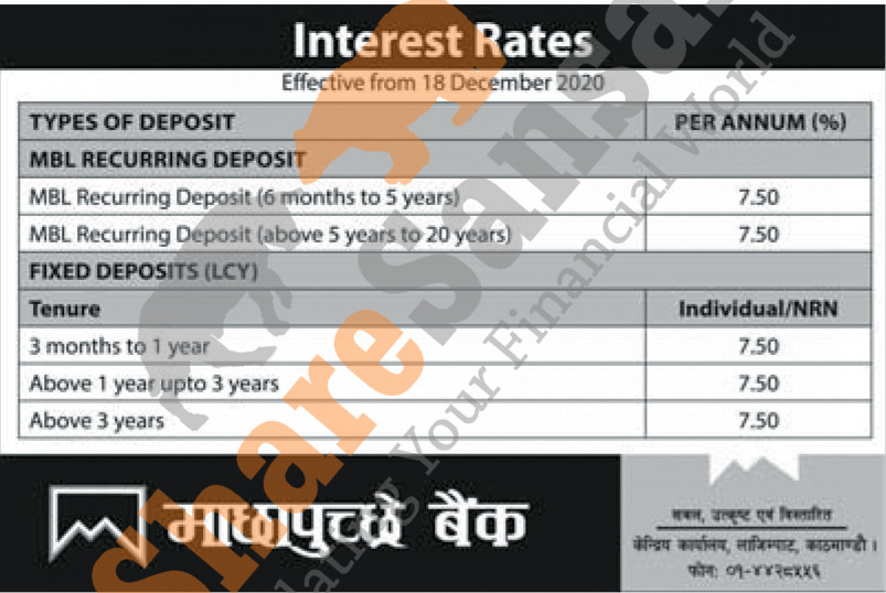 Machhapuchchhre Bank Limited has published a notice regarding the new interest rate for deposit products and it's effective from 3rd Poush, 2077.