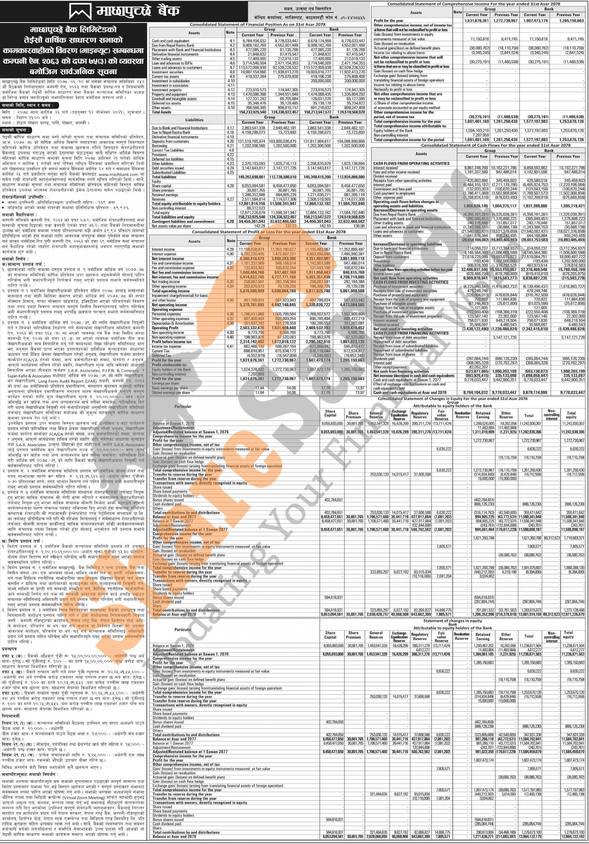 Machhapuchchhre Bank Limited has published the minutes of its 23rd Annual General Meeting (AGM).