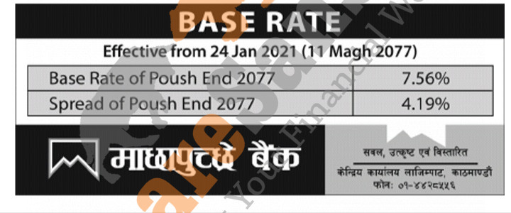 Machhapuchchhre Bank Limited published its base rate of Poush End, 2077.
