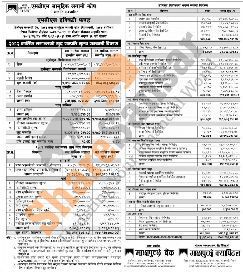 Machhapuchchhre Capital Limited has published “MBL Equity Fund” Net Asset Value (NAV) till Kartik, 2082.