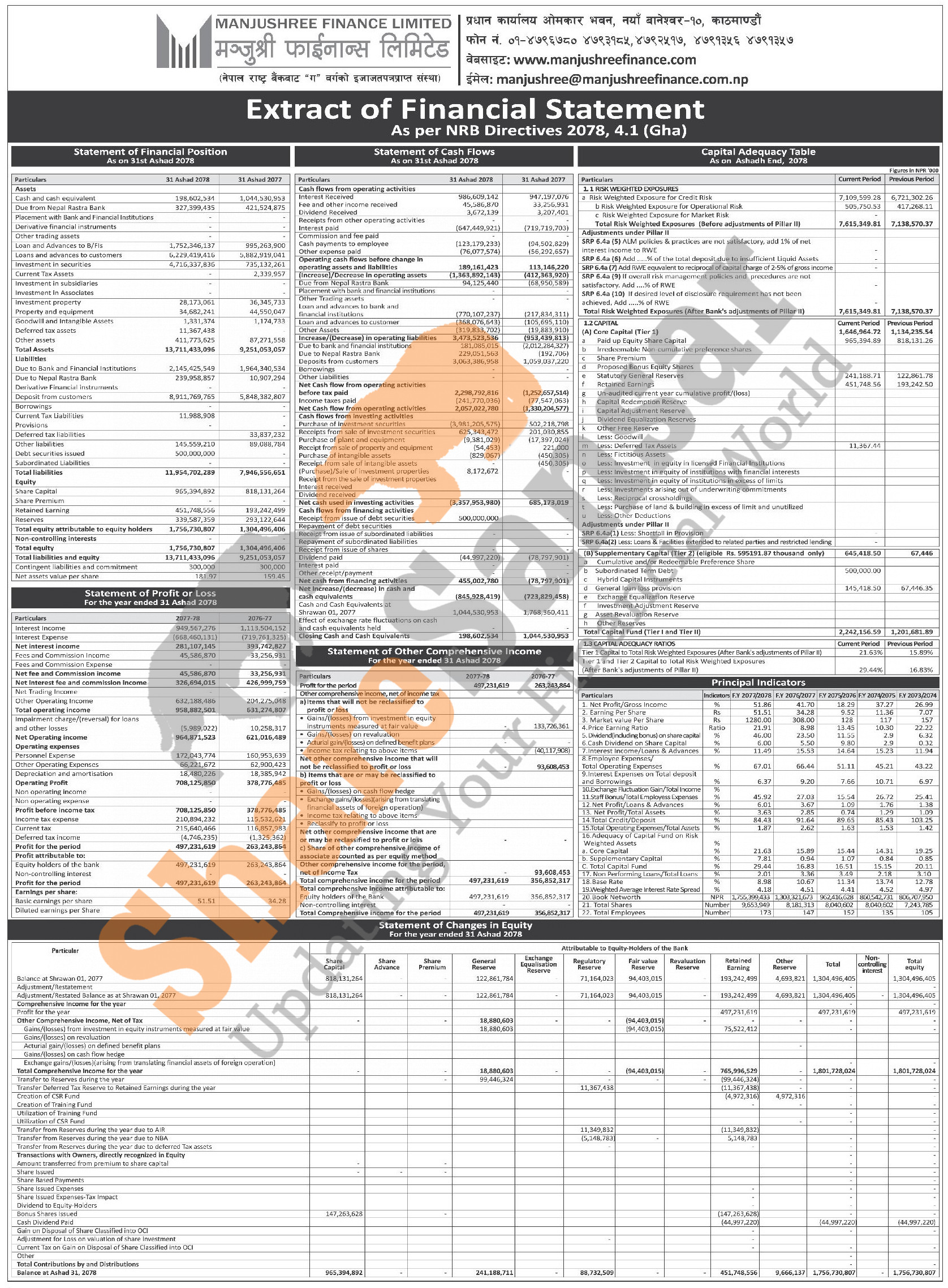 Manjushree Finance Limited has published its annual financial highlights of the fiscal year 2077/78.