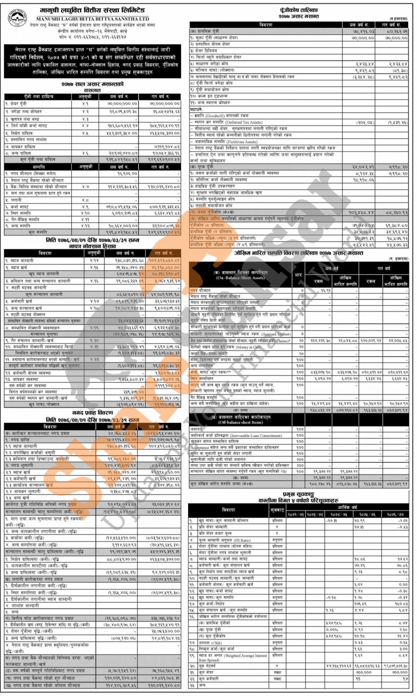 Manushi Laghubitta Bittiya Sanstha Limited has published its annual financial highlights of the fiscal year 2076/77.