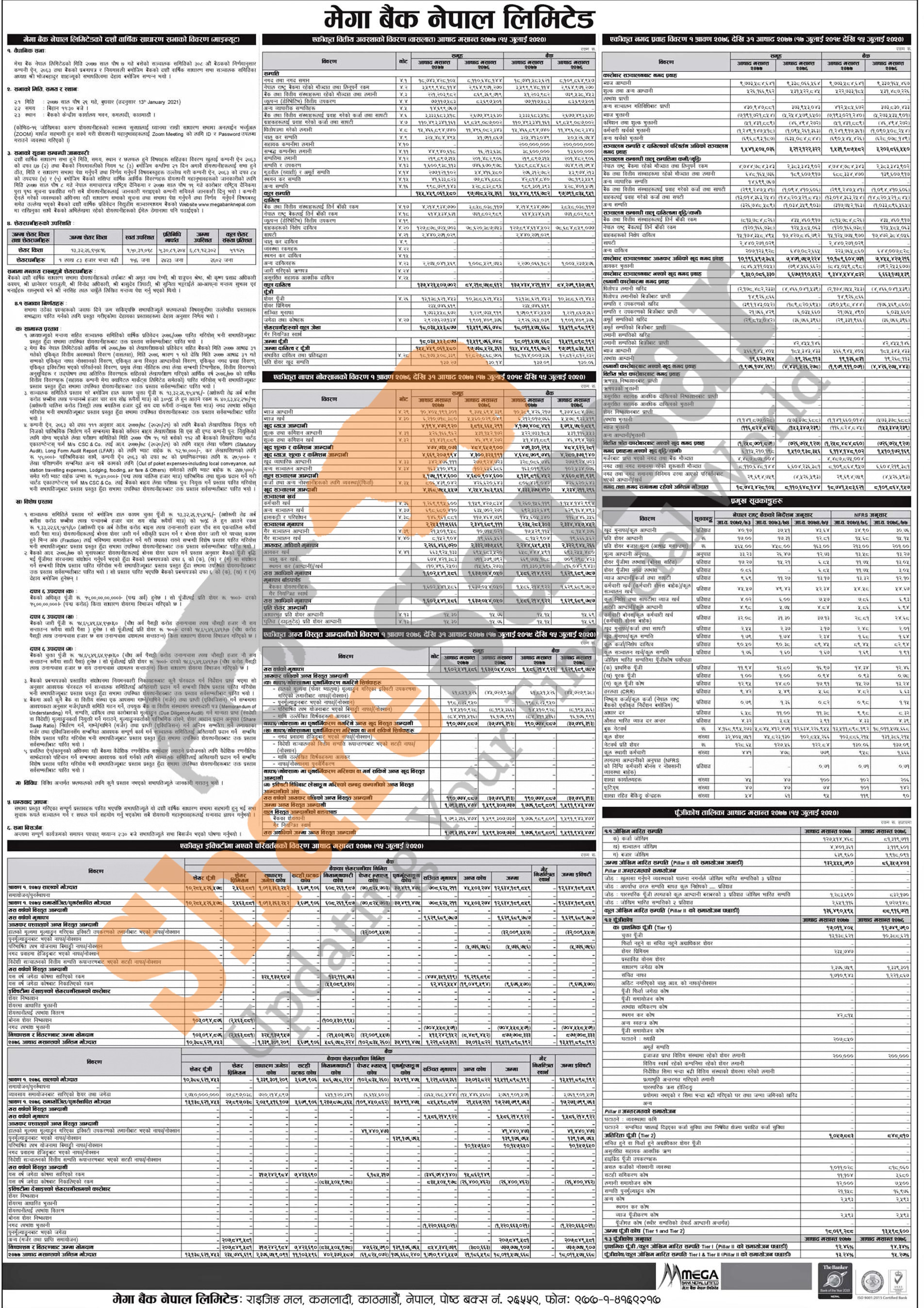Mega Bank Nepal Limited has published the minutes of its 10th AGM and its annual financial statement of the fiscal year 2076/77.