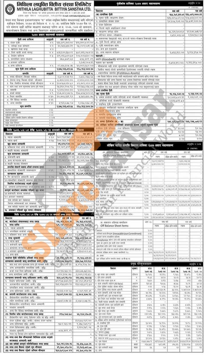 Mithila Laghubitta Bittiya Sanstha Limited has published its annual financial highlights of the fiscal year 2076/77.