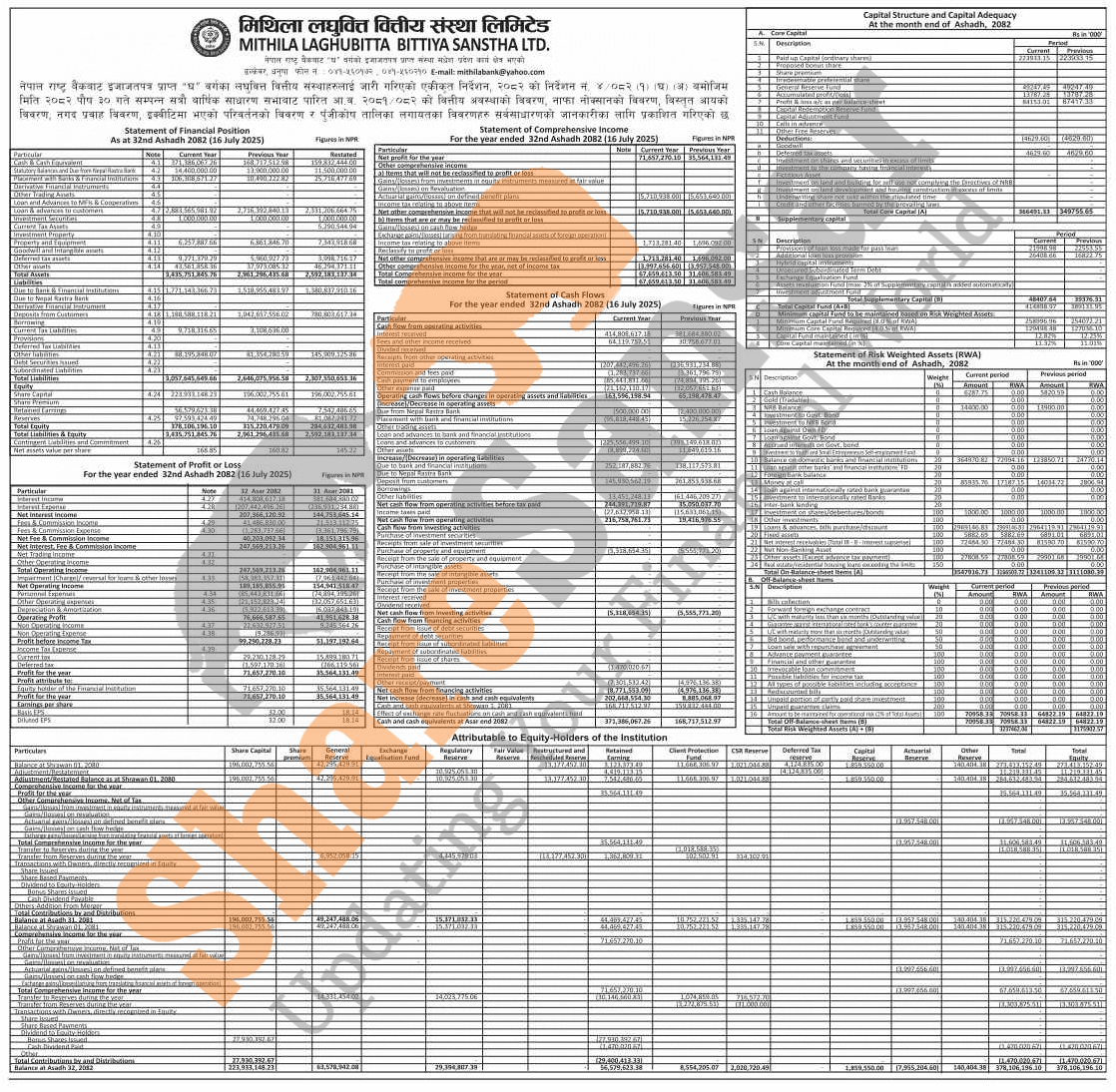 Mithila Laghubitta Bittiya Sanstha Limited has published its annual financial statement of the fiscal year 2081/82.