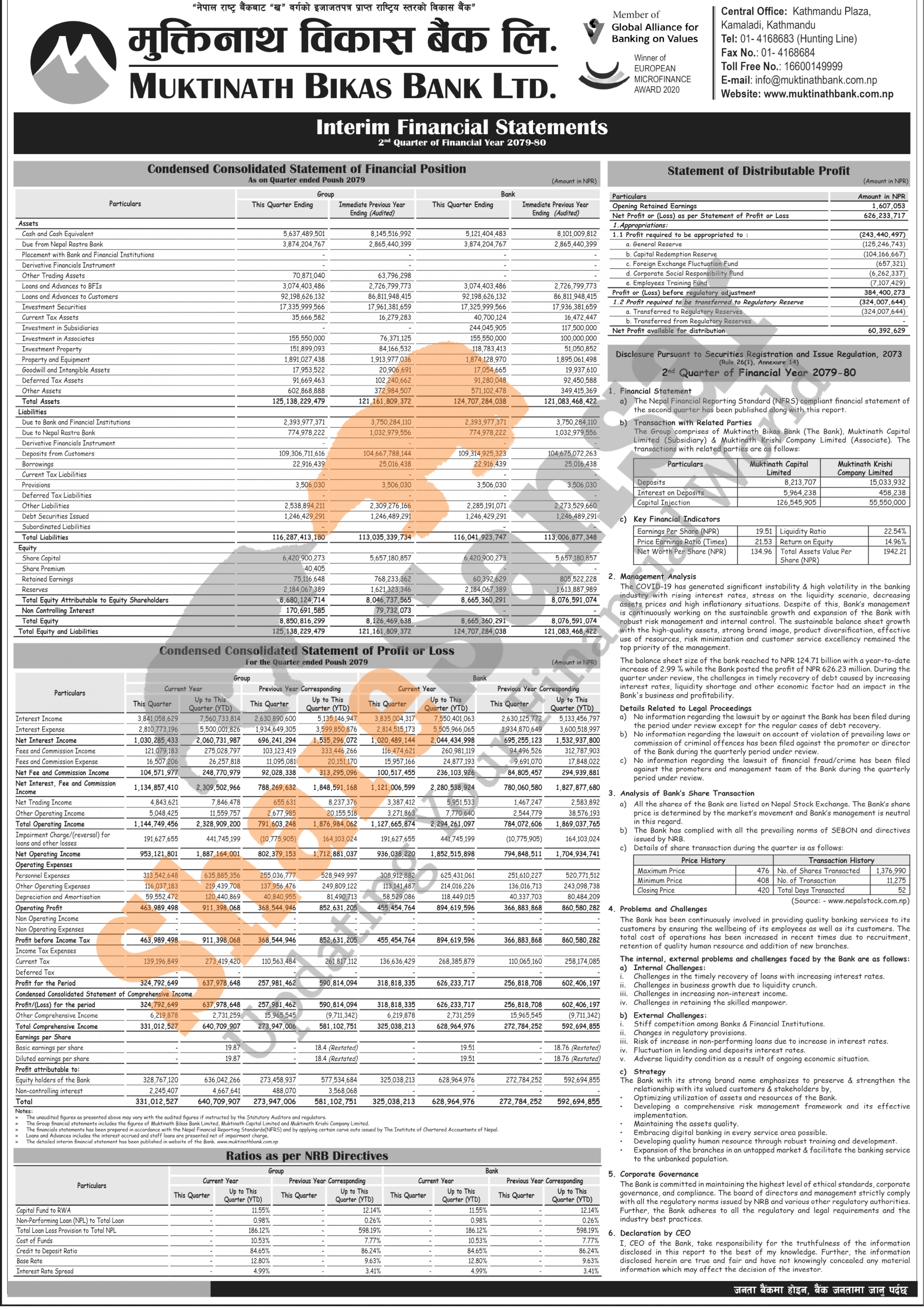 Muktinath Bikas Bank Limited has posted a net profit of Rs 626.23 million and published its 2nd quarter company analysis of the fiscal year 2079/80.