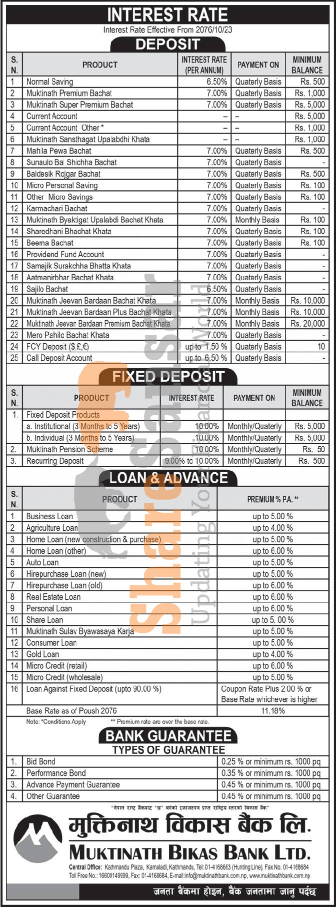 Muktinath Bikas Bank Limited has published a notice regarding new interest rate and its effective from 23rd Magh, 2076.