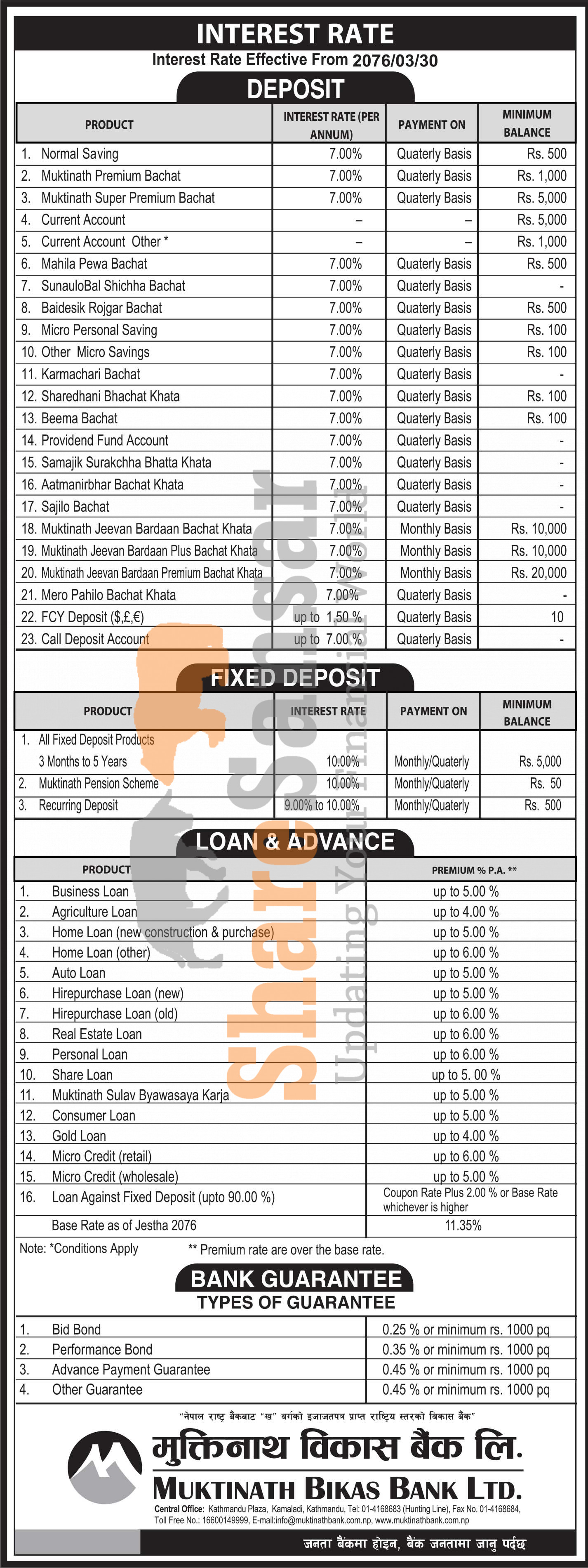 Muktinath Bikas Bank Limited has published a notice regarding new interest rate and its effective from 30th Ashad, 2076.