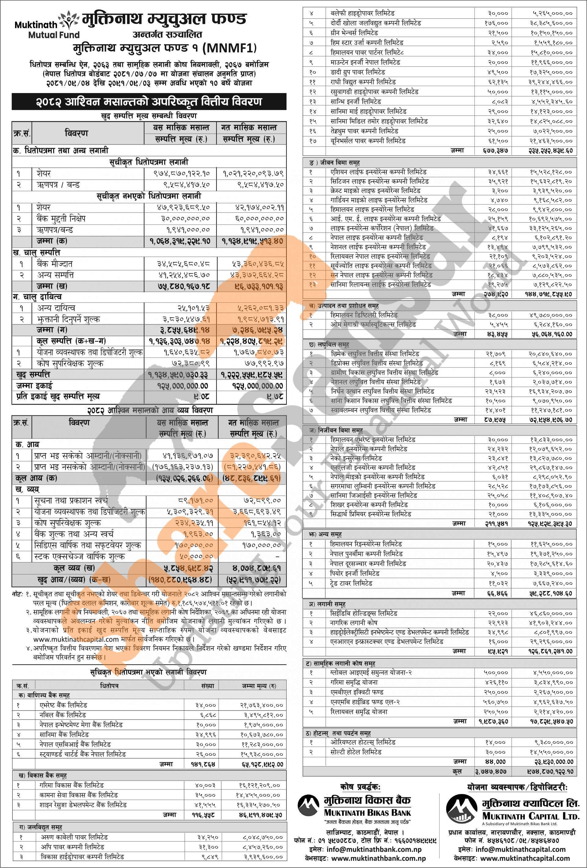 Muktinath Capital Limited has published "Muktinath Mutual Fund 1" Net Assets Value (NAV) till Ashwin, 2082.