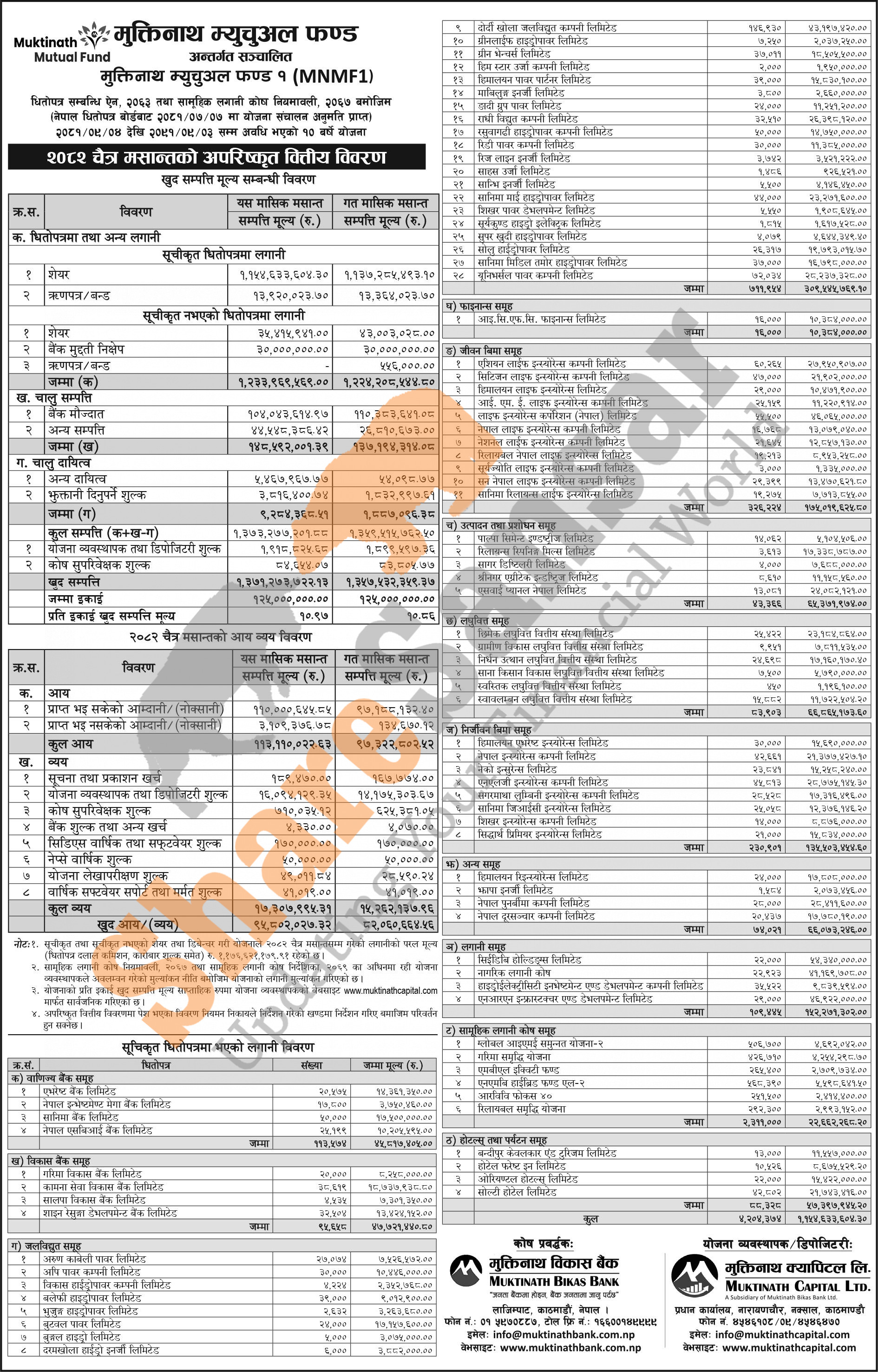Muktinath Capital Limited has published "Muktinath Mutual Fund 1" Net Assets Value (NAV) till Chaitra, 2082.